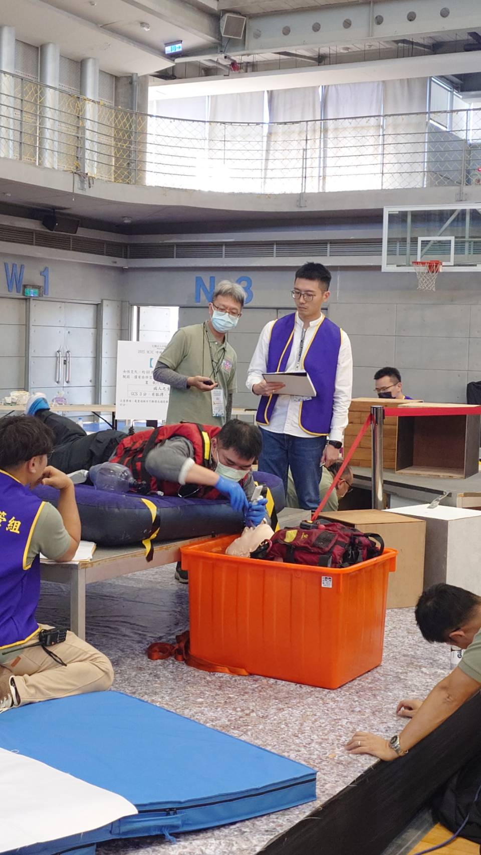 預賽以呼吸道異物梗塞為主題,內容涵蓋患者擺位、異物排除與進階呼吸道建立。代表隊流程確實、判斷精準,以高度專業手法獲得評審一致肯定, 順利晉級決賽。決賽採水災情境模擬,操作內容包含DAI(Drug-Assisted Intubation)活人插管及水中困難姿勢插管。代表隊在高壓與不良環境中保持冷靜,展現真實場域的高階救護能力,最終脫穎而出。