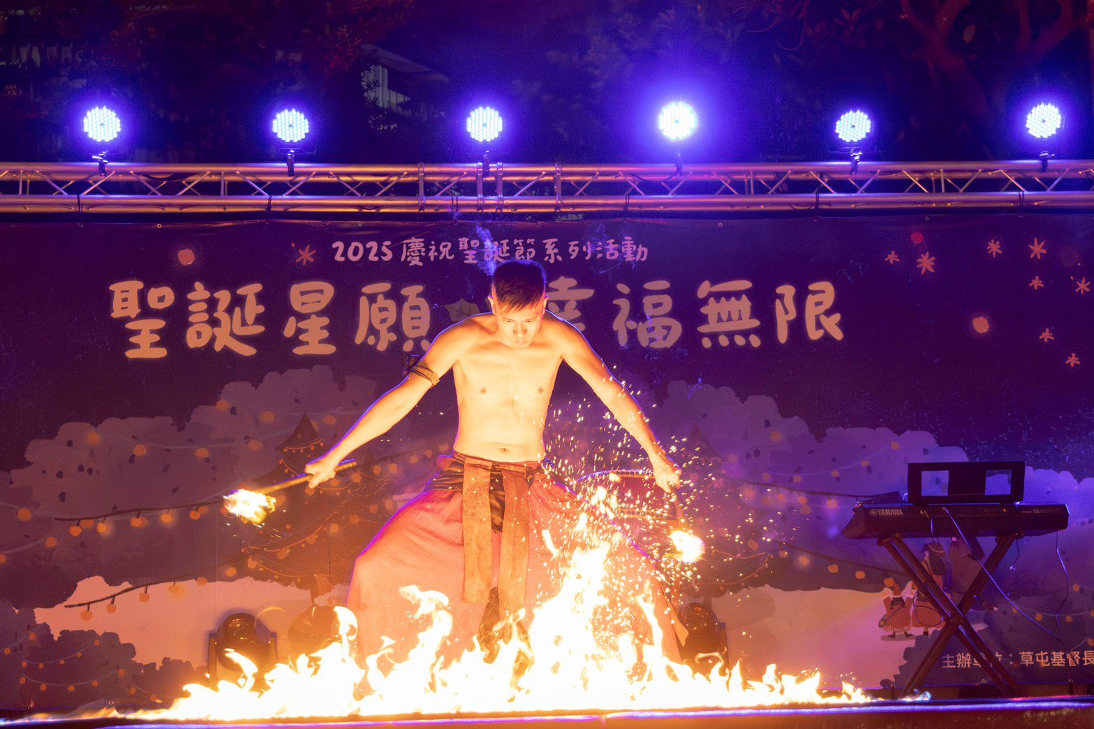 草屯長老教會22日晚間舉辦一年一度的「聖誕節點燈晚會」,雖然當天同一時段鎮內亦有明華園大型活動,但教會現場依然湧入超過400名信徒與民眾,共同迎接一年中最具喜樂氣氛的時節。晚會中,多位基督徒藝人分享生命見證並獻唱詩歌,強調聖誕節的核心不僅是歡慶,更是將愛與恩典傳遞給身邊每一個人,讓更多人感受真愛的力量。