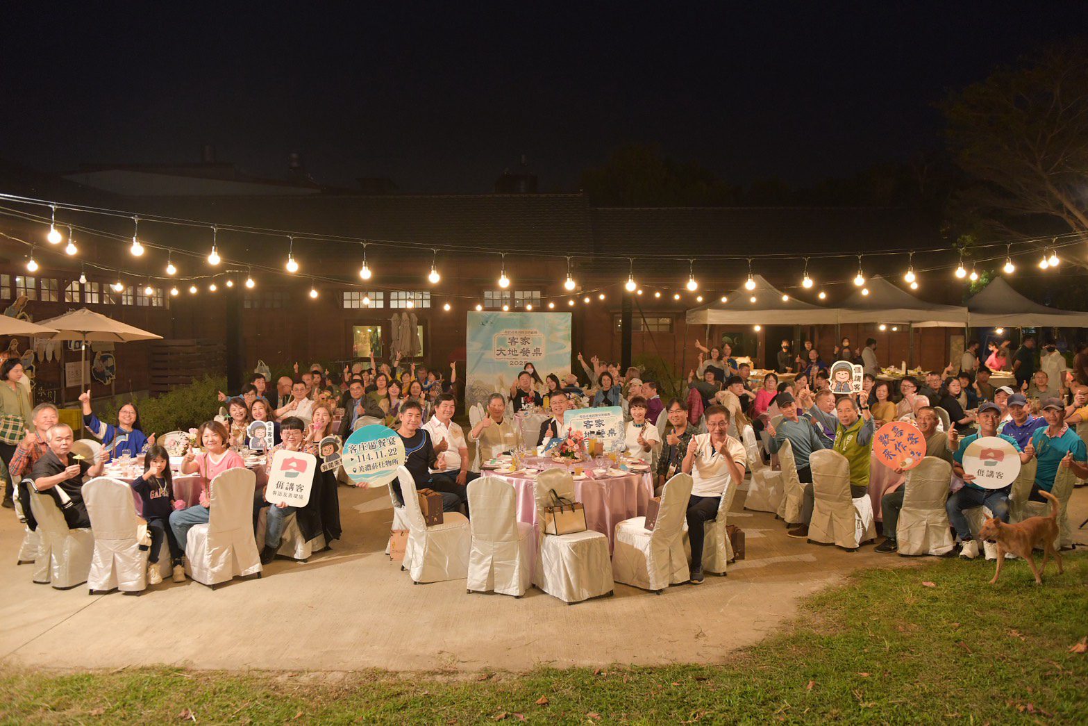 客家大地餐桌今年除了依例在高雄市新客家文化園區的餐宴,首度亦在美濃客庄舉行,以更貼近土地的方式呈現「從產地到餐桌」的核心精神。「品味右堆」上午重點活動在食農市集與食農教育,讓民眾看見客庄產業經濟動能及食材產地來源脈絡。傍晚園區燈光亮起,場域轉為沉穩、舒服且帶有客庄秋季晚風的氛圍,現場座無虛席,百位嘉賓與會,呈現高雄客庄飲食文化的當代能量。