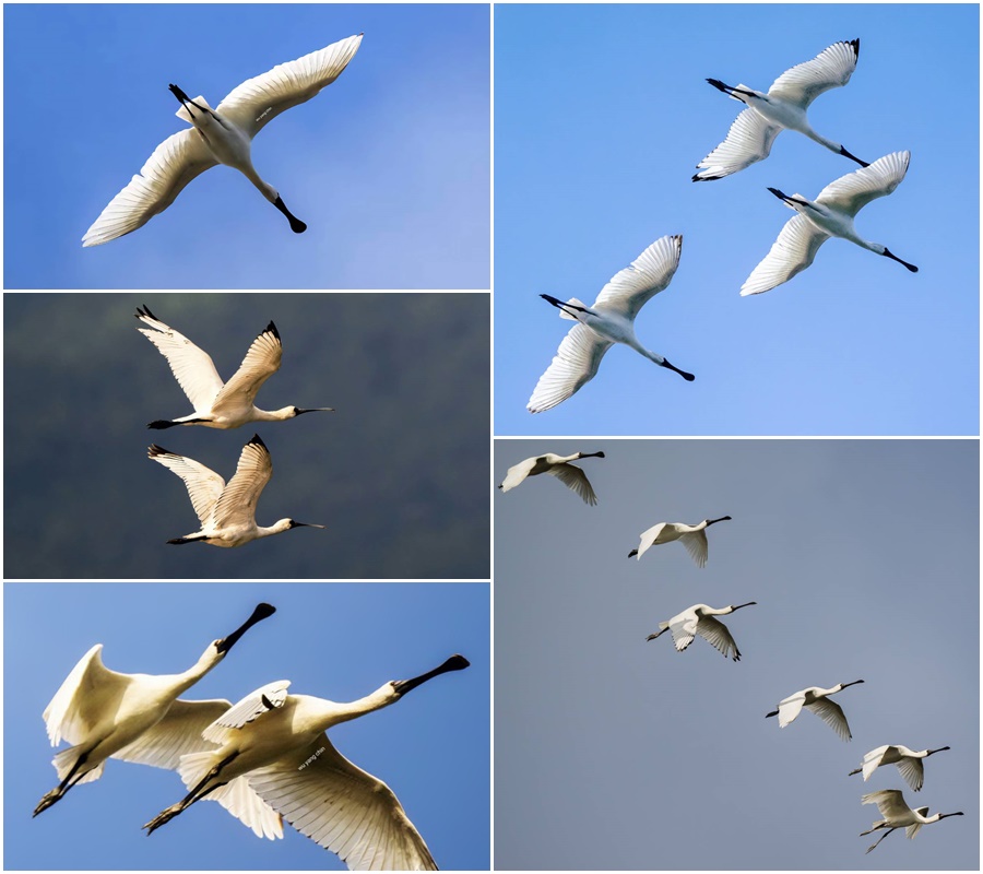 ▲黑琵單飛、雙飛、群飛的各種姿態,煞是美麗。(圖/吳楊欽攝)