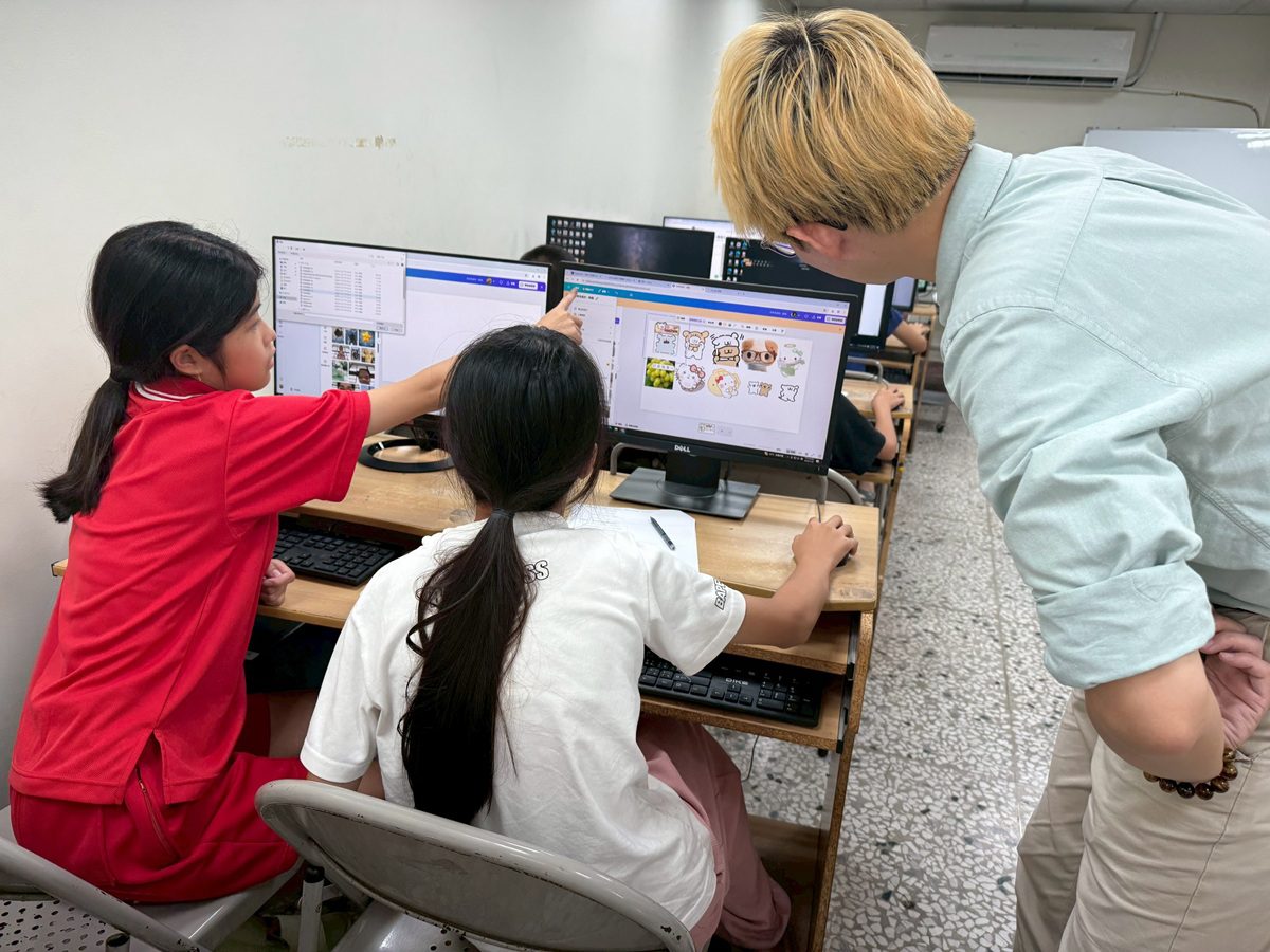 彰化家扶田中服務處,自2008年起獲財團法人謝言信謝林玉鶯文教基金會捐贈電腦設施設備及免費網路,為了讓扶助童可以增加數位素養的機會,家扶利用每個月1-2次的週六,安排、規劃豐富多元課程。近年來自媒體與短影音的興起,改變了人們吸收資訊的方式。一段短影片和一張設計完善的海報,就能快速吸引受眾注意,同時又能傳達明確訊息。因此課程設計從「平台設計」到「排版練習」,再到「影片剪輯」,讓學員們循序漸進地學習如何以數位工具展現創意,同時理解現代資訊呈現的邏輯。老師引導學生運用簡單易上手的設計網站與AI工具,實際完成自己的作品。