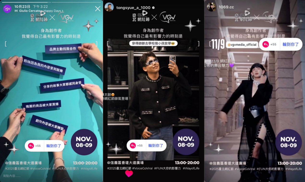 活動還沒開始,社群就先熱起來。一則限動蓋樓主題「我最有影響力的時刻是__」在創作者圈掀起回應潮,延伸出「創作時沒有你,我活不下去⋯」等話題,讓原本沒打算參加的創作者也紛紛加入討論。這波話題不只炒熱氣氛,也成功把活動期待值推到高點,讓線上討論自然導流到線下參與。