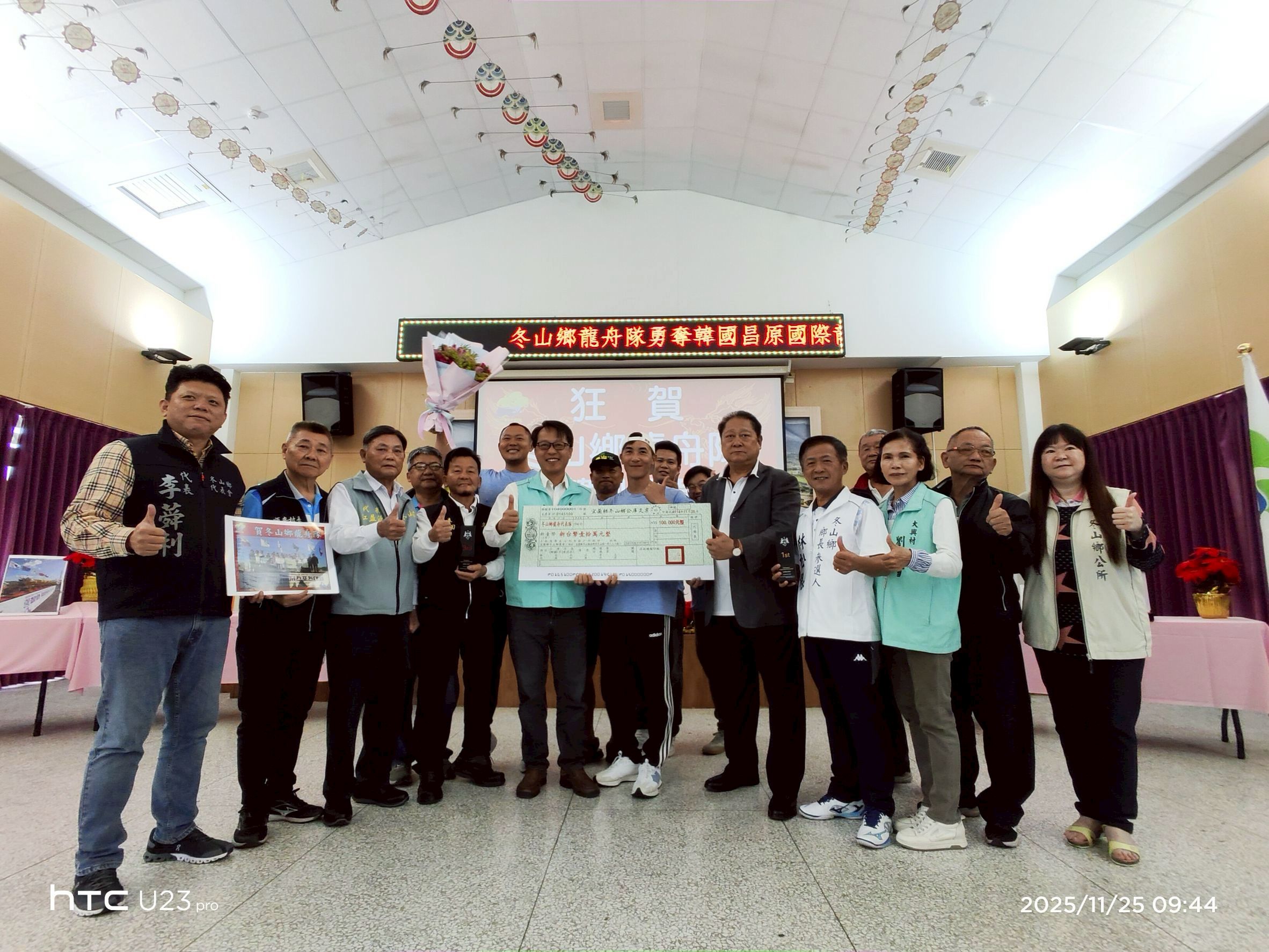 冬山鄉龍舟代表隊參加韓國昌原國際龍舟賽奪金摘銅,近期參加花蓮太平洋國際龍舟賽,優異表現、入選2026世界俱樂部龍舟錦標賽參賽資格,持續努力為宜蘭冬山爭光。