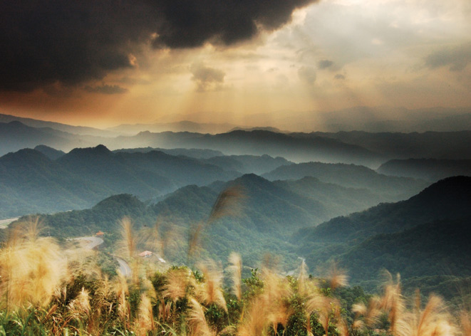 若想擁抱更開闊的山景,不妨登上「無耳茶壺山步道」。晴朗時稜線分明、海岬如畫;雲霧繚繞時則呈現朦朧飄渺的山嵐之美。鄰近的地質公園以特殊礦物紋理與風化岩壁聞名,是自然愛好者心中的隱藏秘境。沿山路往九份方向前行,秋末冬初不可錯過的景致就在「不厭亭」。每逢芒花季,102 市道被銀白花浪渲染,如為山城披上一層柔亮羽衣;夕照落下時,金光灑落山稜與芒花尖端,遠方海岸線隱約閃耀。不厭亭因視野開闊、偶見雲海,有「小武嶺」的美稱,是社群平台上的熱門打卡點。