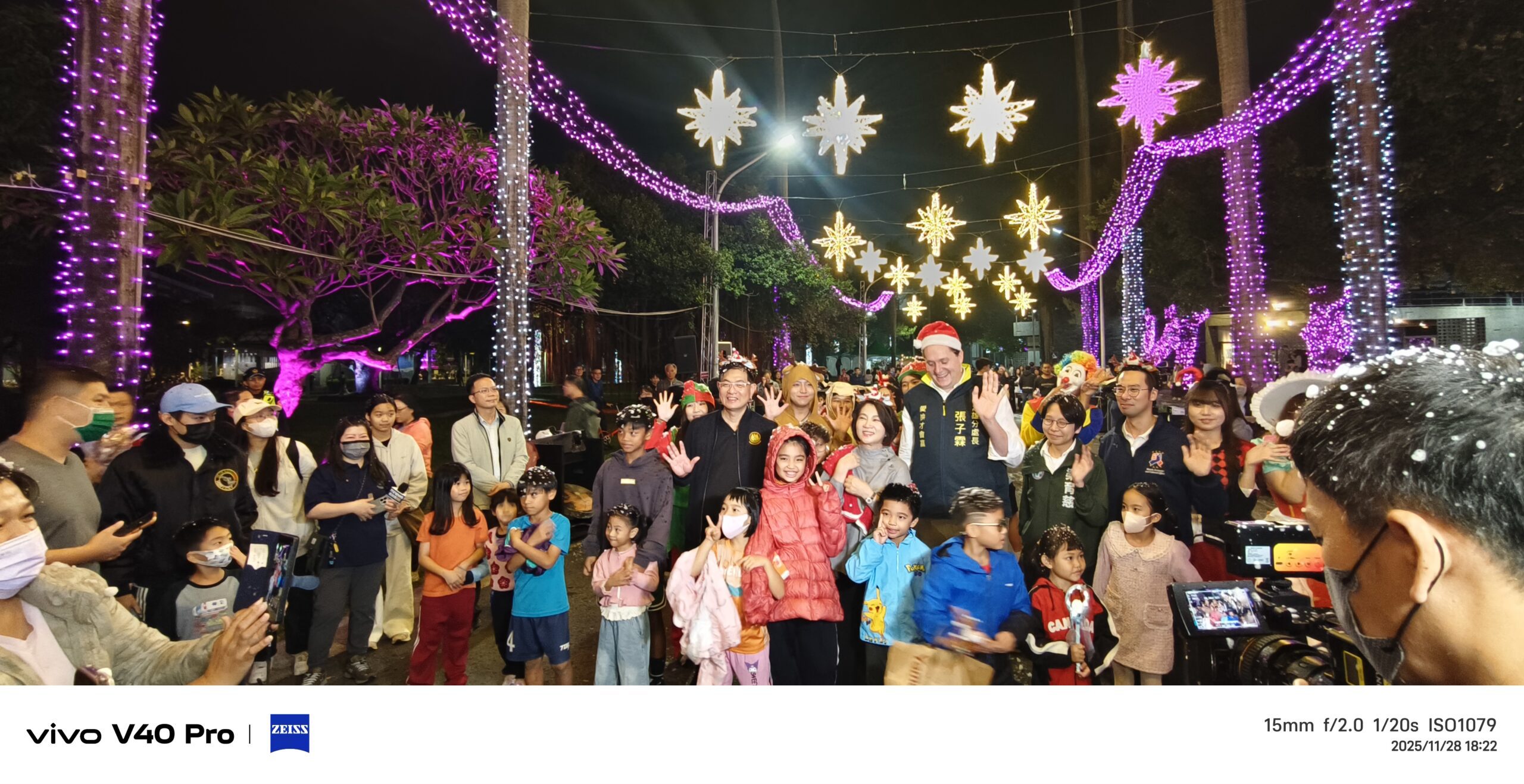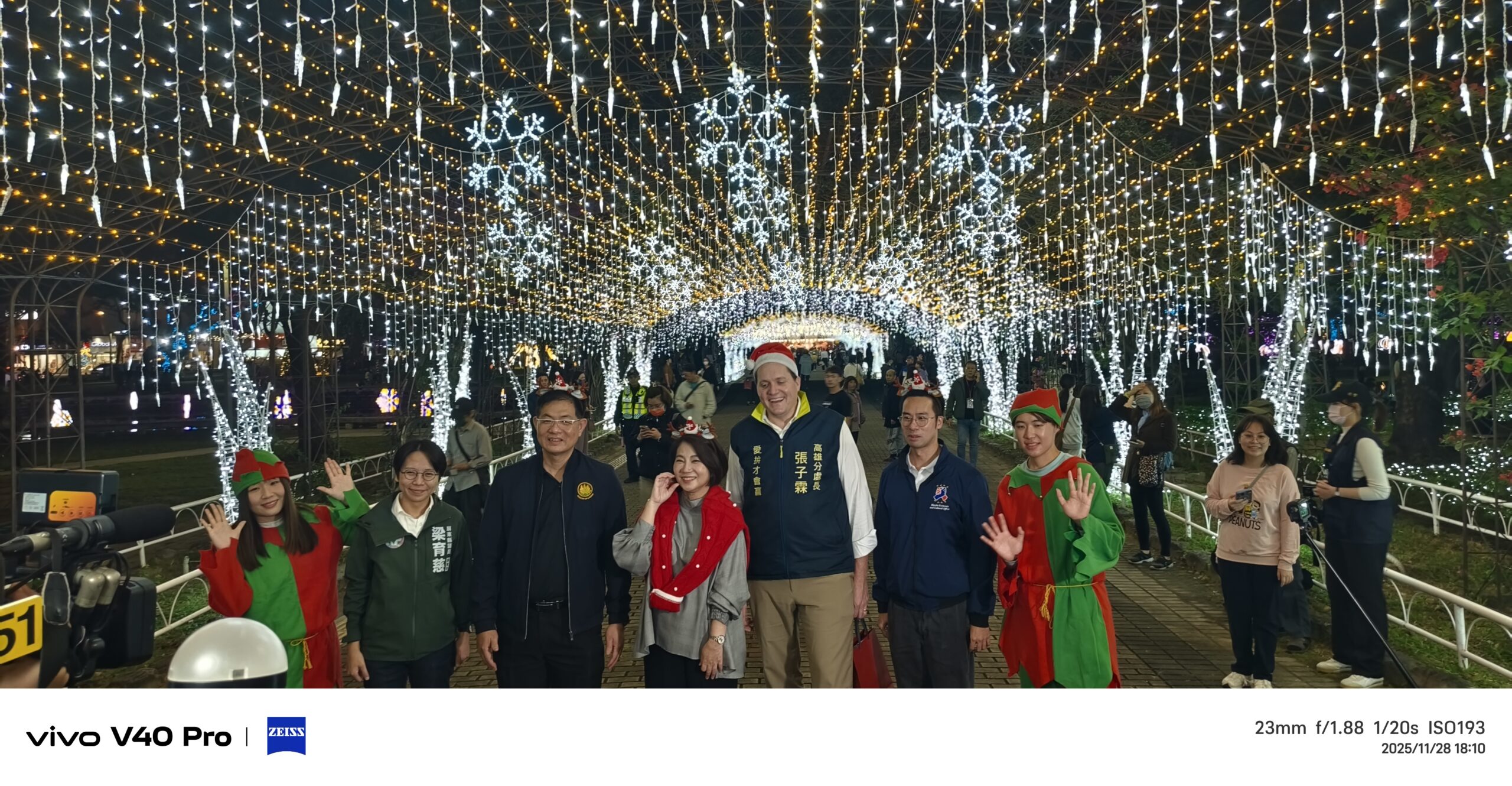 點燈儀式由縣長周春米、美國在台協會及多國駐台代表共同啟動,燈飾伴隨音樂依序亮起,美聲與光影交織掀起陣陣驚呼。來自台南的陳小姐形容「像走進童話世界!」帶著全家前來的王先生也讚嘆園區景色宛如「每一幕都像在拍明信片」,邀民眾把握年末一起感受屏東最迷人的聖誕季。