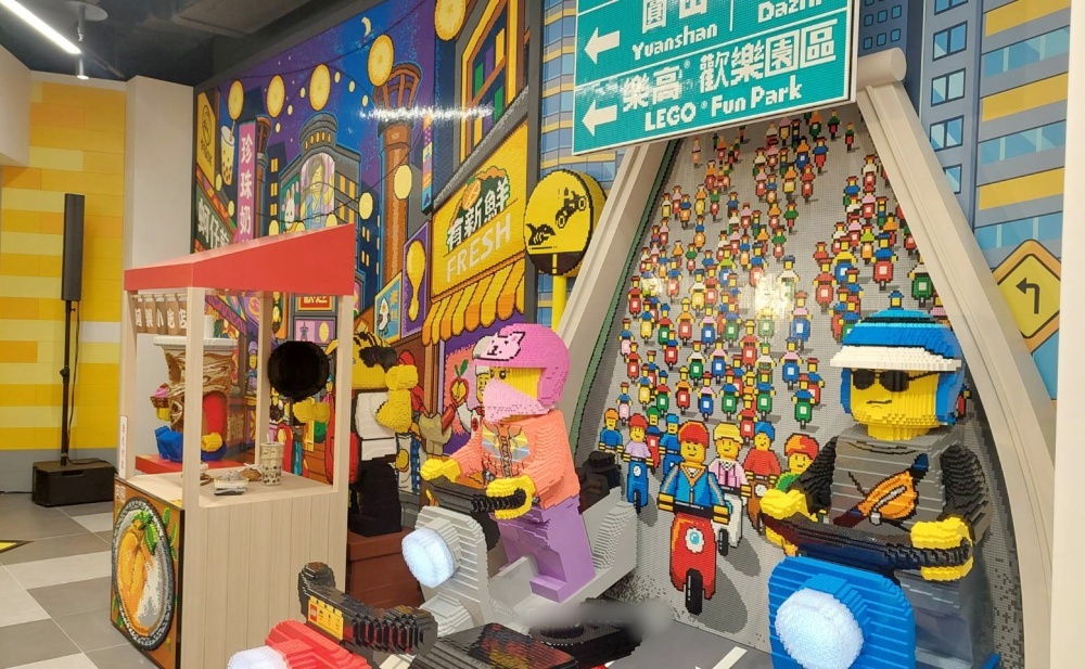 店內不僅提供最齊全的商品陣容,更獨家打造了多個令樂高迷為之瘋狂沉浸式體驗,細緻描繪了「台北的日與夜」:白天,顧客可以坐進「貓空纜車」積木造景,鳥瞰縮小版的台北風光;到了夜晚的場景,則有燈火通明、充滿道地小吃模型的「台灣夜市」,以極具視覺衝擊力的「機車瀑布」互動牆串連起日與夜,將成為全新樂高打卡潮玩聖地。