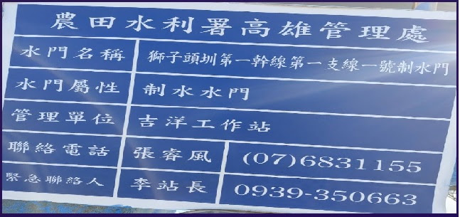 1▲農田水利署高雄管理處吉洋水利工作站:高雄市美濃區( 上九寮)中正路三段361號 TeL:07-6831155
