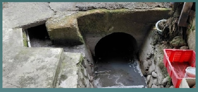 14▲暗涵-2.png(獅仔頭圳第一幹線暗涵改善前)( 昔時係溪埔寮一帶,熱天後生sangˊ人騎單枝竹筒溜暗涵, 民間泅水技藝過大河灞ba的發源地)(1908年日人時代所建, 好在到吉洋工作站站長李榮昇&農田水利署陳潔工程師時, 大力爭取規劃建設好勢(如圖照8),