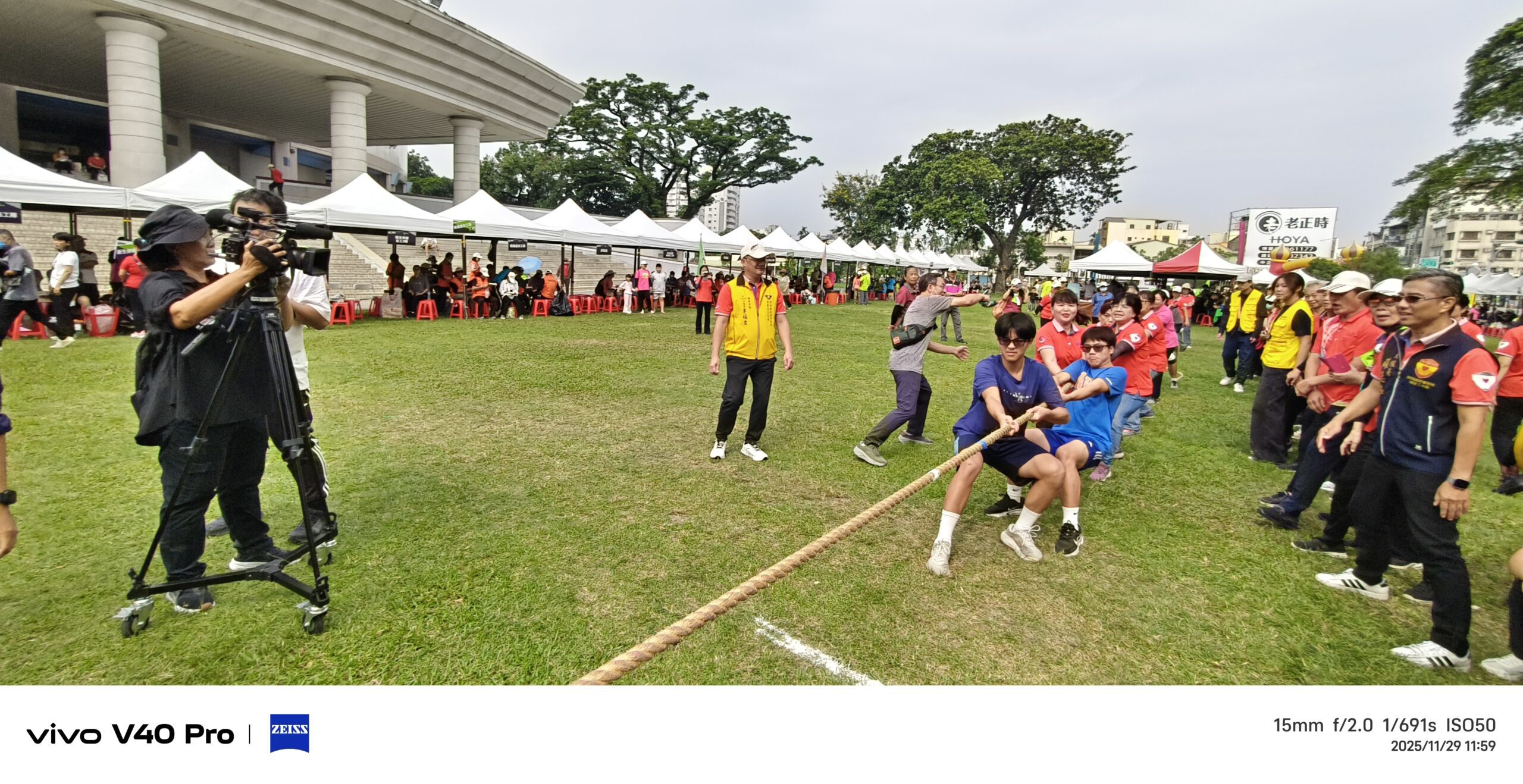 縣府社會處表示,本次志工運動大會規劃五大趣味競賽,包括「大家衣起來」、「屏東好物234」、「水球接力賽」、「挑擔競走」及最受矚目的「拔河比賽」。志工們在競賽中展現體力、默契與創意,彼此加油鼓勵,賽場上熱情滿滿、笑聲不斷,現場就像一場大型嘉年華。除了競賽,會場同步設置「志工博覽會」,由縣府13個局處設置15個攤位,內容涵蓋社區服務、環境保護、防詐宣導、動物保護、文化推廣等多元議題,吸引不少志工與民眾駐足參與,活動氛圍熱鬧且富教育意義。