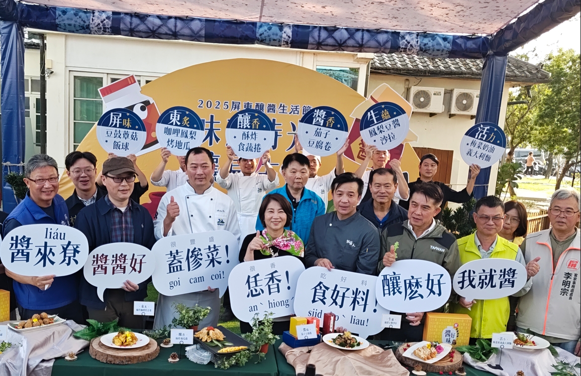 「2025屏東釀醬生活節」114年11月29日在勝利星村星星廣場熱鬧開幕,今年活動內容特別邀請屏科大及五星級萬豪酒店主廚共同研發創意蔬食釀醬料理,並搭配釀醬市集、舞台表演、職人分享與趣味料理競賽,讓民眾不只味蕾滿足,也能感受一場視覺盛宴。
