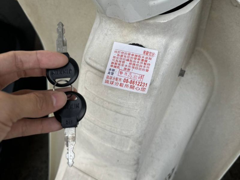 ▼執勤員警考量琉球地區觀光客眾多,立即代為保管鑰匙,並在機車上張貼保管單據。(圖/屏東縣政府警察局東港分局)