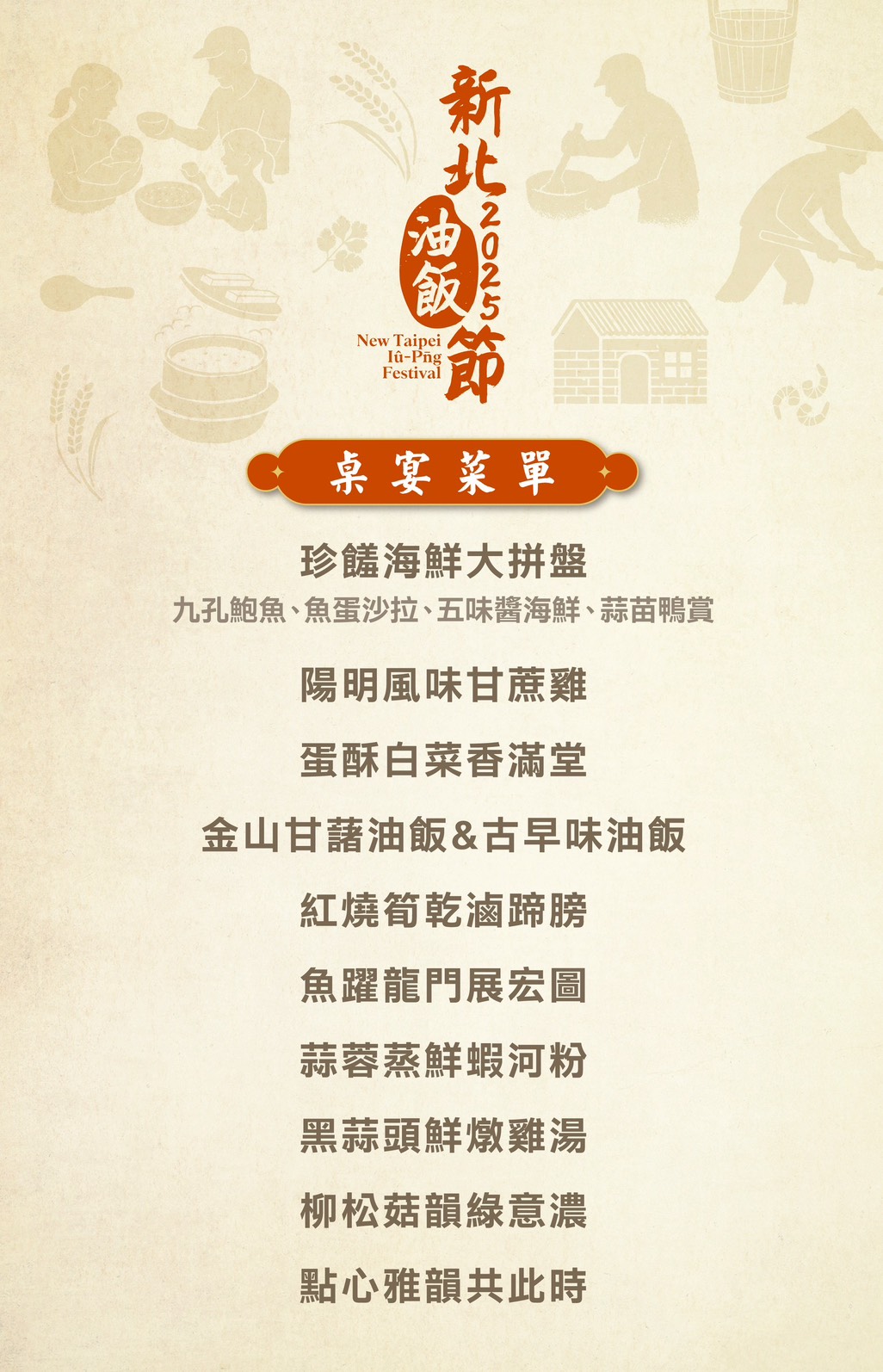 為期2個半月的新北油飯節活動在歷經網路票選與專家評審階段後,最終名次將於12月6日在蘆洲國立空中大學舉辦的2025新北油飯節頒獎典禮現場揭曉。此外,當天備受矚目的「油飯傳香總鋪宴」也將於12月1日開放搶購,限量27桌,售完為止!