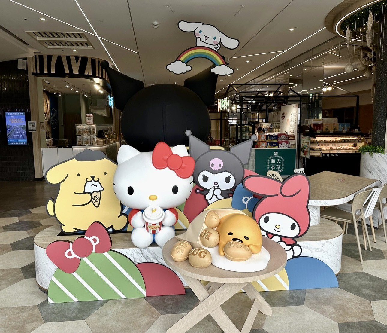遊客一踏進湖口服務區,無論是室內餐廳、扶梯、座位休息區,還是戶外空間,都能發現三麗鷗六大人氣角色:HELLO KITTY、酷洛米、大耳狗喜拿、布丁狗、蛋黃哥及美樂蒂,每個角落都充滿驚喜。主題商店也同步推出限定聯名商品,包括20吋行李箱、行李吊牌、絨毛飲料提袋、奶茶杯、印花上衣等多款人氣周邊,更有3米高酷洛米裝置成為必拍景點,粉絲千萬別錯過!