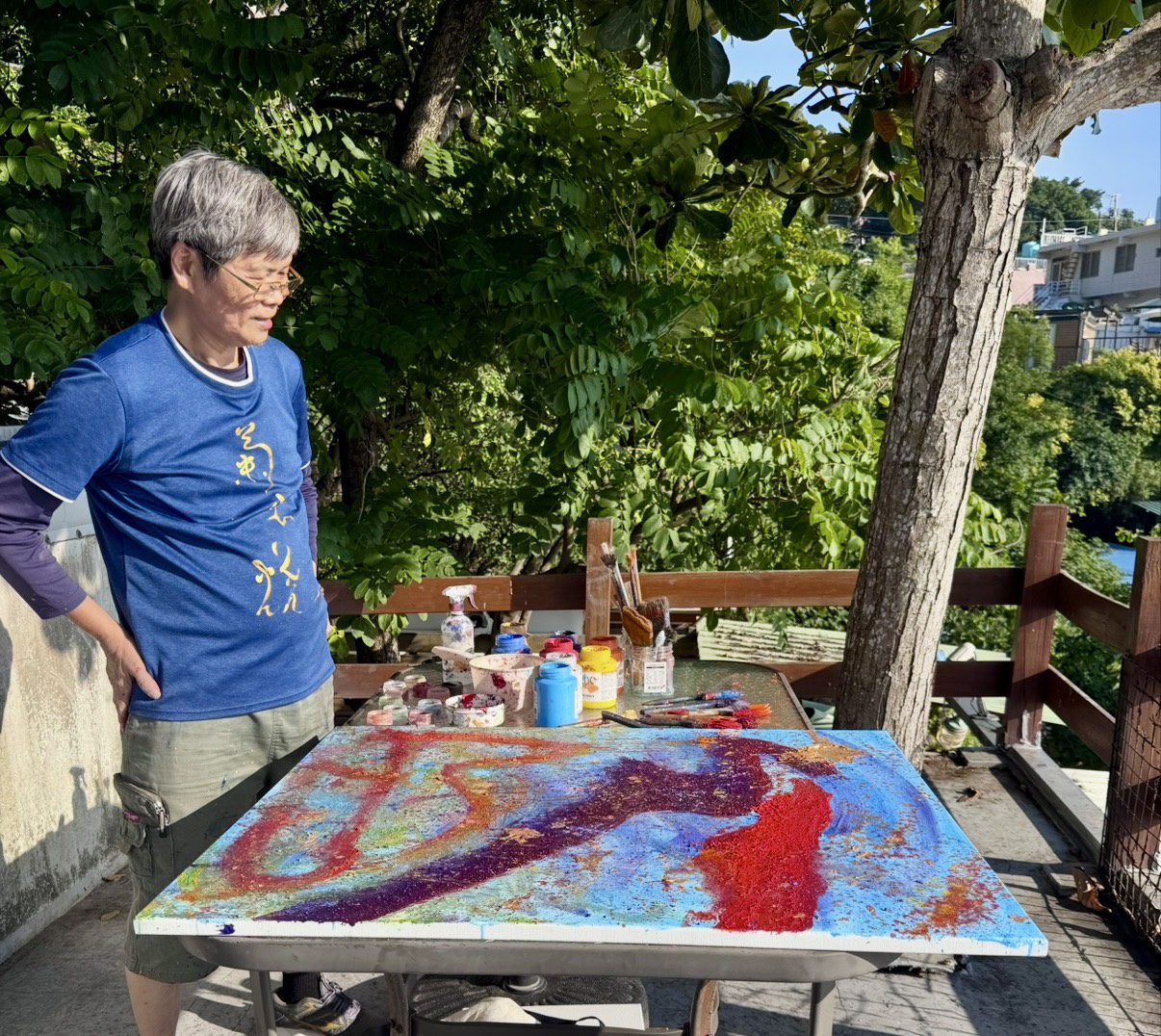 2019年,罹患攝護腺癌,即以「勇敢面對、智慧選擇、欣然接受、寬心放下」自許,並和粉絲、親朋、癌友分享,加油打氣⋯。內人為照顧我而提前退休,然而在2020年,她發現罹患肺腺癌,我們倆雖然都罹癌,但我們都持有一顆愉悅和感恩的心,熱愛生命、行善社會,捐贈復康巴士和救護車。2022年10月底,我因癌細胞擴散,雙腳癱瘓失能,無法「菊岩燒」陶藝創作,我還是熱愛它,用手畫出「生命的樂章 四季交響曲」紀錄我的生命;12月中,內人再度住院,在醫院裡,她也拿起筆,在繪本上,畫出我們的生活和生命。