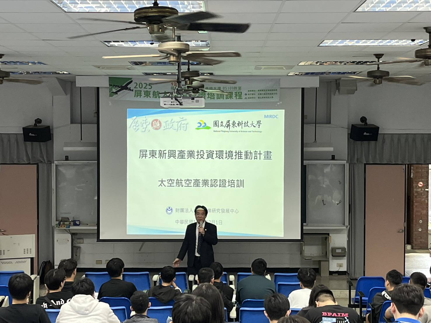 本次課程由財團法人金屬工業研究發展中心專業講師授課,課程包含國際航太發展趨勢、品質系統要求以及結訓測試,讓企業清楚掌握國際審查標準、特殊製程控制要求與進入航太供應鏈的具體做法,協助屏東產業加速布局太空與航太產業鏈。