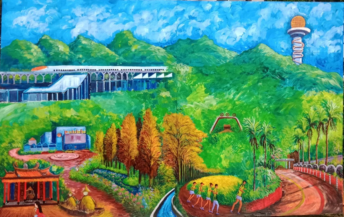 榮家蘇再勝主任表示,非常感謝優秀的在地畫家曾永錫老師,以生花妙筆,化腐朽為神奇,將原來是榮家配置圖,因風化凋落廢置於路旁的大鐵板,變成家區的新亮點。也感謝榮民林文照先生慷慨解囊,支援畫作經費;更感謝常年贊助本家藝文展覽等活動的優質企業欣雲天然氣股份有限公司。
