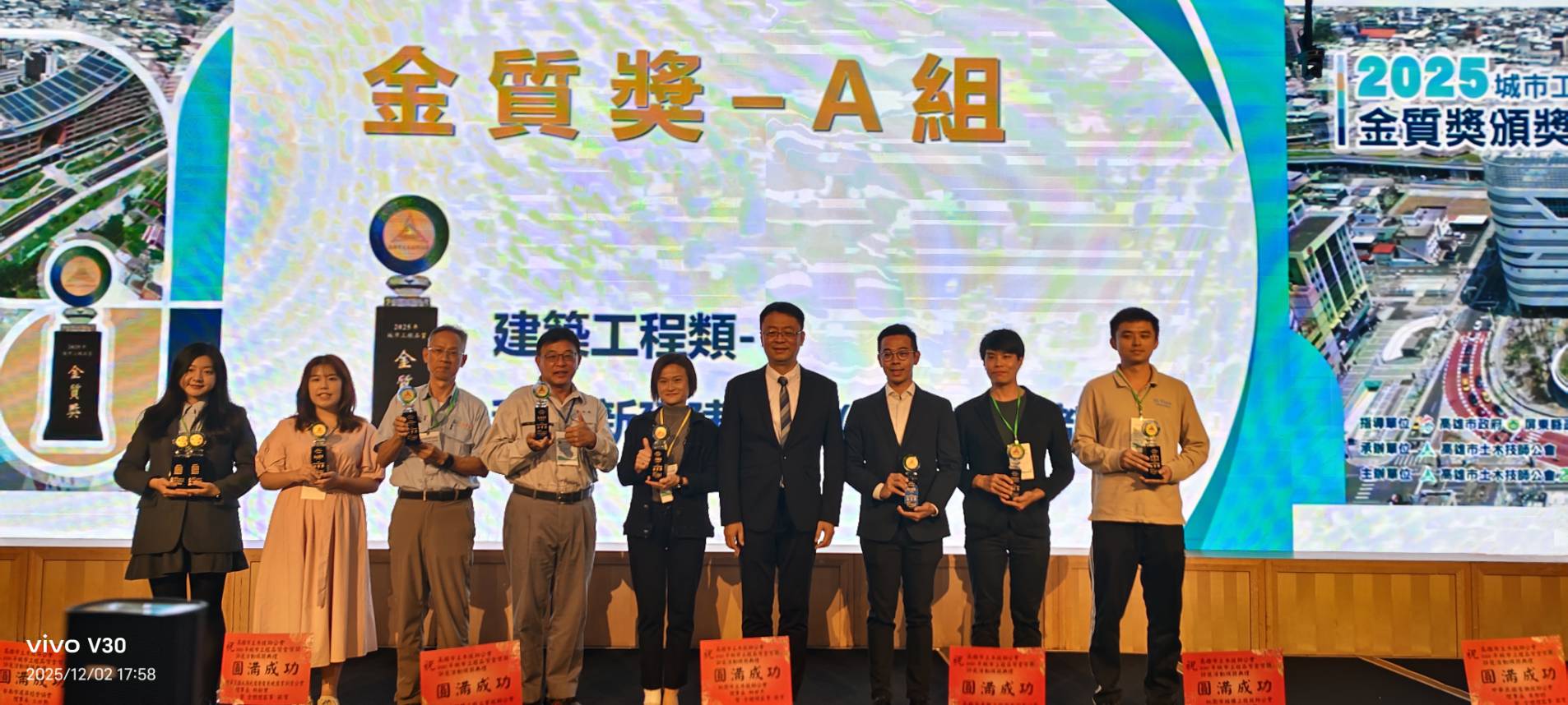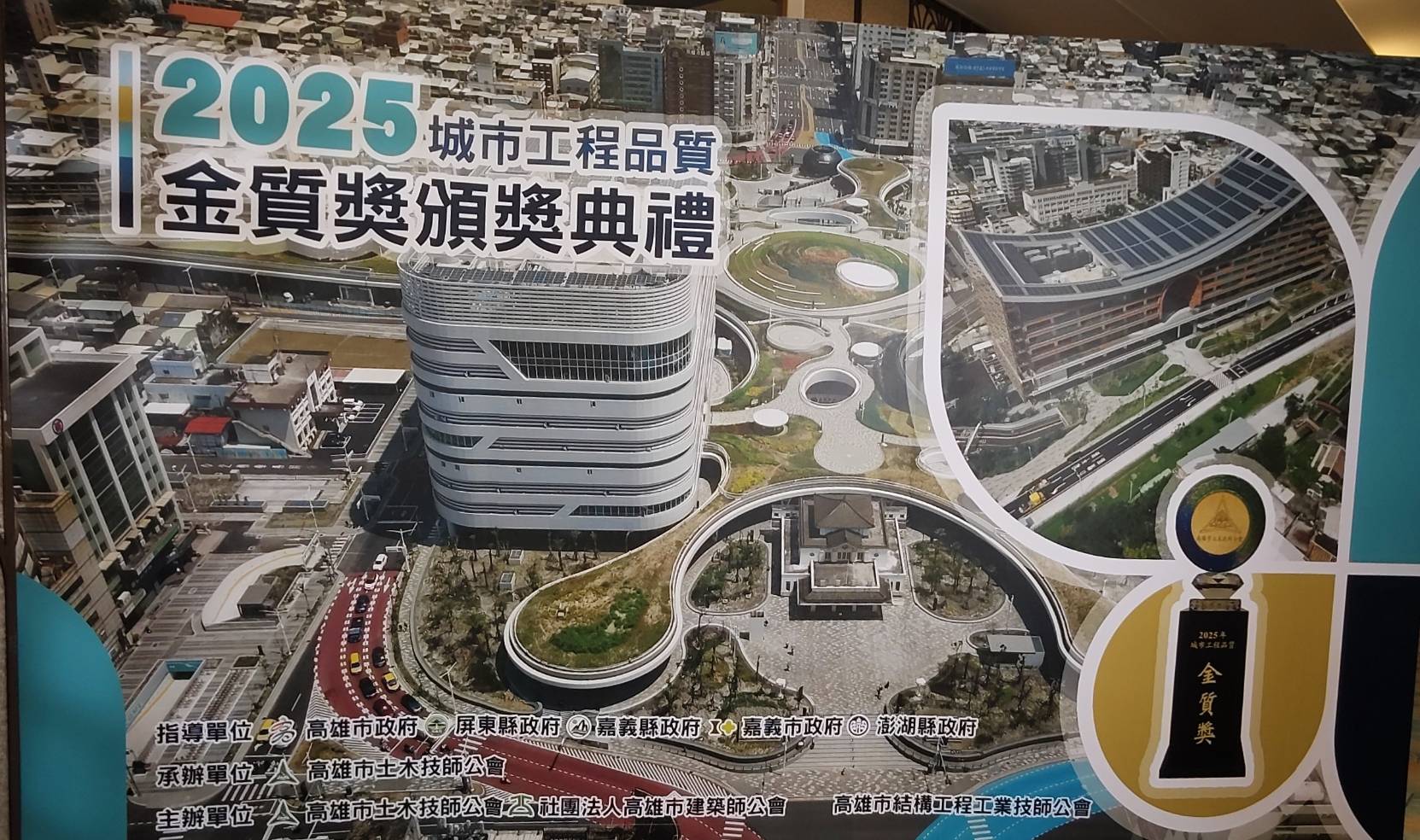 【記者 周志杰/高雄專案報導】南台灣與離島地區工程品質的新標竿誕生,「2025 年城市工程品質金質獎」昨(12/2)在高雄漢來巨蛋會館揭曉,首次集合高雄、屏東、嘉義縣市與澎湖跨域合作,成立所謂「S 走廊+離島」工程治理平台。本屆共有 170 件工程報名,涵蓋建築、土木、水利、景觀、綠能等七大類別,並首度設置「個人貢獻獎」。典禮不僅是對優質工程的表彰,更是南台灣城市發展與永續競爭力的重要里程碑。