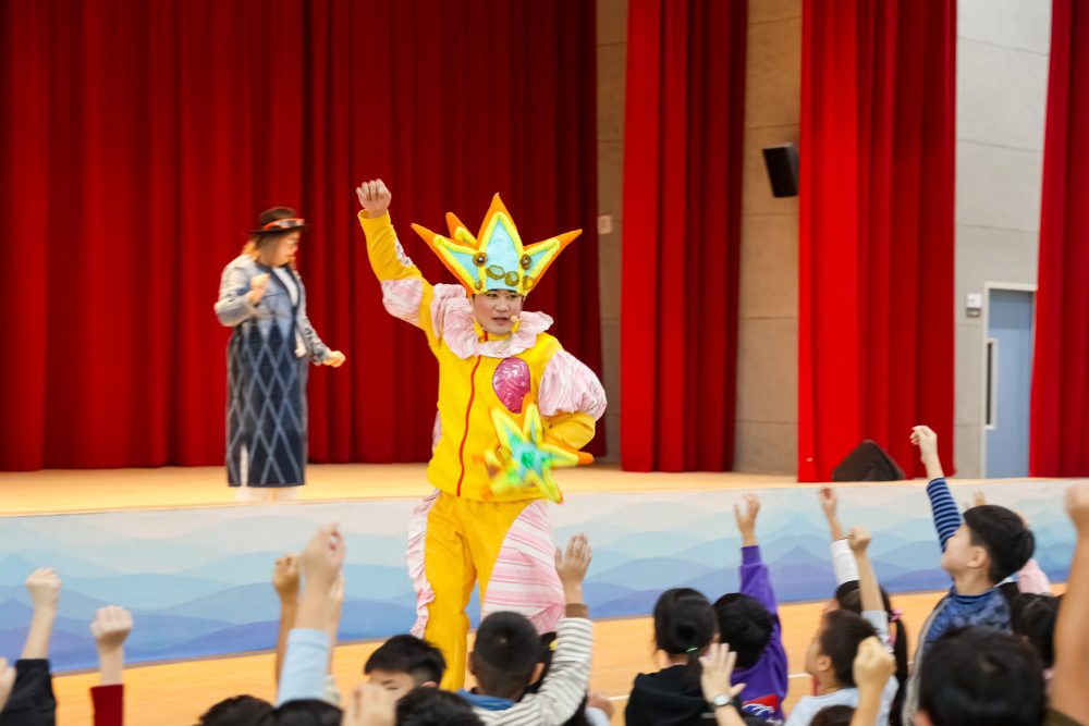《藍海守護行動》特別邀請「天馬戲創作劇團」擔綱演出,融合了肢體律動、角色扮演與互動問答,巧妙地將「垃圾減量」、「資源循環」和「海洋保育」等核心議題,轉化為引人入勝的劇場情節。