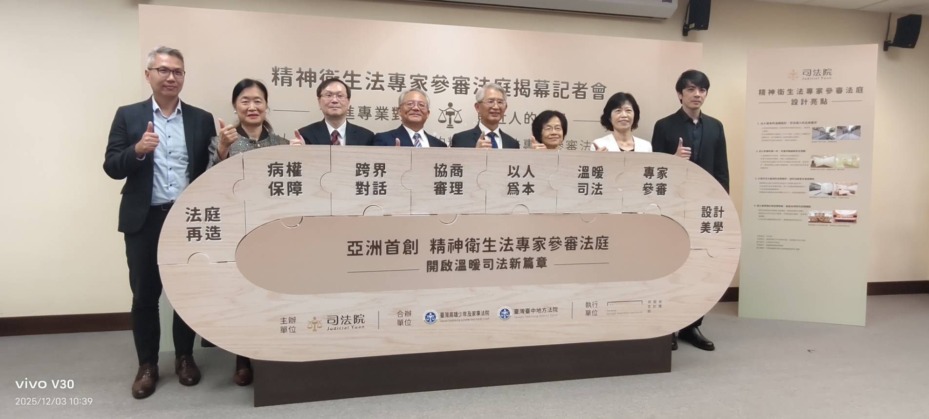 【記者 周志杰/高雄報導】為落實人權保障與身心障礙者司法近用,司法院昨日(12/03)在高雄少年及家事法院舉行「精神衛生法專家參審法庭揭幕記者會」,宣示正式啟用該制度。包括衛福部、法律扶助基金會、精神醫學會、律師、公會代表與社福團體皆到場,共同見證司法、醫療與社會支持網絡的跨專業協力。這代表台灣司法在精神衛生案件處理上,正朝向更具尊嚴與人本關懷的方向邁進。