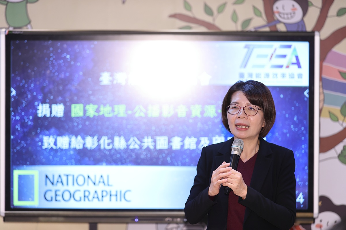 為推廣環境永續理念,立委黃秀芳、縣議員莊陞漢牽線臺灣效率能源協會,今天捐贈《國家地理》影片公共播放授權一年期,受贈者為彰化縣立文化中心、員林演藝廳及縣內26間鄉鎮市圖書館與全縣38所國中,不只讓國中生能在校園多元學習,縣民也可在圖書館透過影片跨域成長!