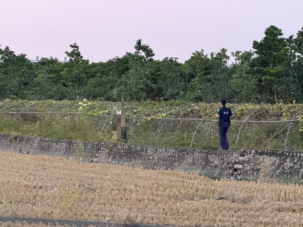 ▲警方獲報後立即趕赴現場,發現28年次老翁身著短袖上衣,獨自在公墓旁農地間徘徊,神情略顯迷惘。(圖/田中分局提供)