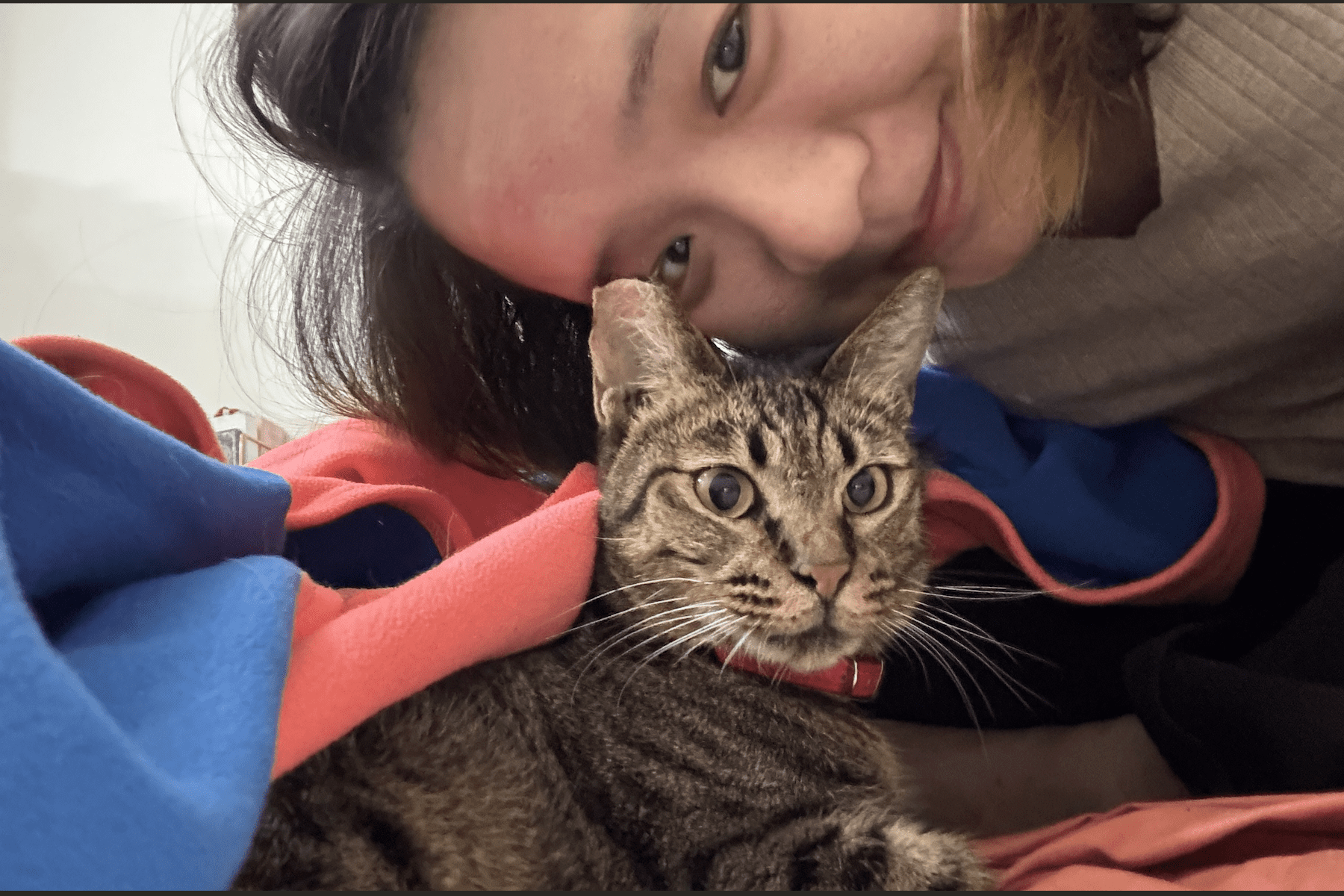 八里動物之家的「聖聖」則是1年多前在八里區龍米路二段附近被救援的成貓,八里動物之家獸醫師黃勁達表示,「聖聖」入所時相當虛弱,嚴重脫水、失溫,經檢查後發現有腎功能不全、貧血等問題,經過幾個月時間的調理才逐漸回復元氣,「聖聖」相當幸運,遇到一位有照護急症經驗的主人,認養人李小姐表示,「聖聖」很親人,跟我很投緣,也感謝八里動物之家工作人員細心的照顧牠,以及明確告知我日後照護需注意事項。