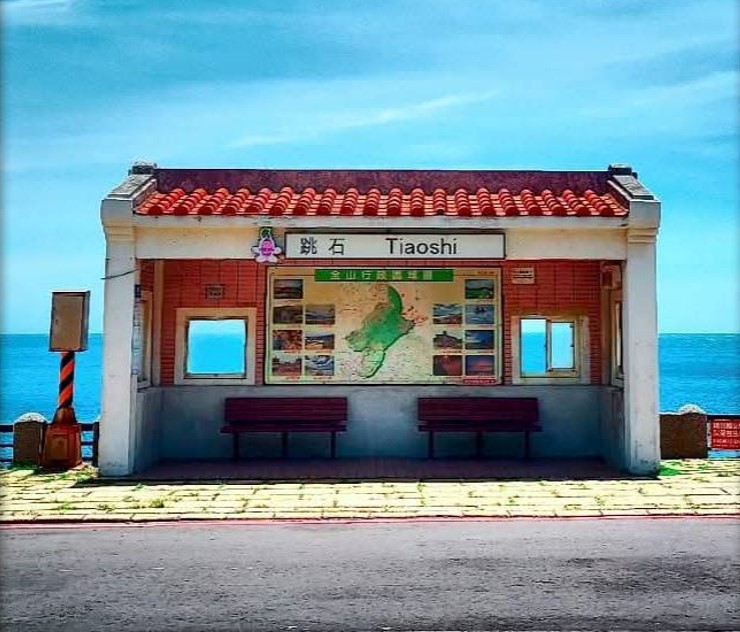 ▲跳石海岸沿岸有一個「跳石公車站」,被譽為臺灣最美公車站,吸引許多遊客專程前來拍照打卡。(圖/新北市漁業處 提供)