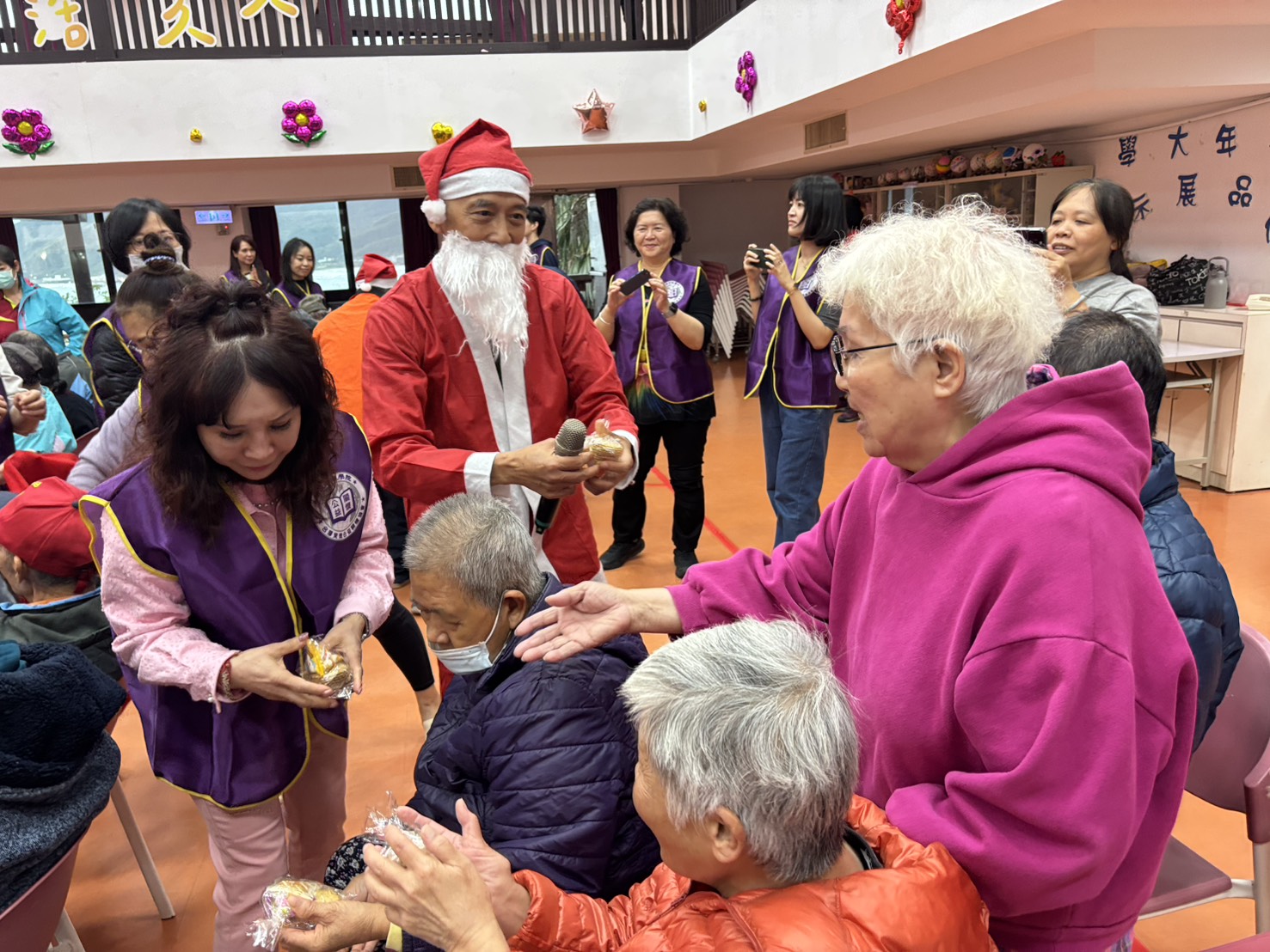 除了精彩演出,兩個協會與貴賓還共同捐贈4萬元加菜金,紫微公益協會的志工更化身為聖誕老公公,送給每位長輩一份耶誕禮物。