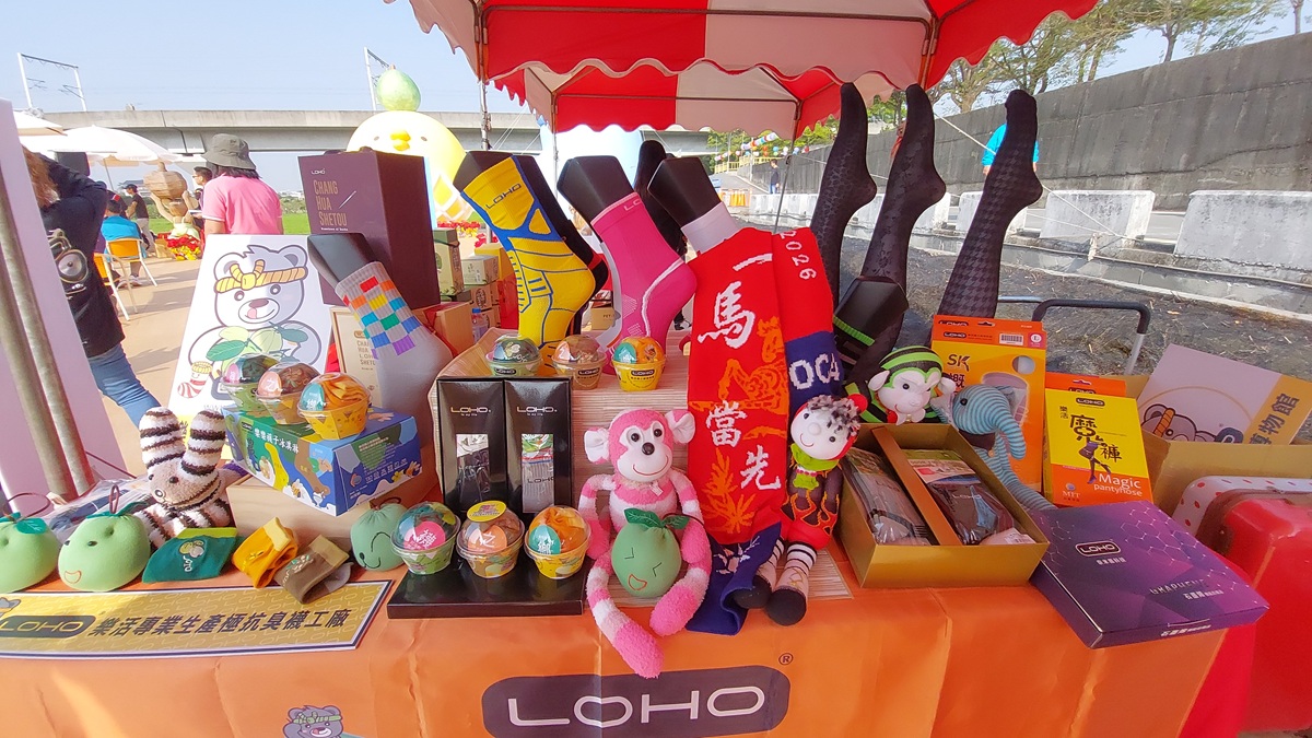 ▲「2025彰化社頭織襪芭樂觀光節記者會」,現場同步展示社頭在地農特產品及織襪產品。(圖/記者蕭麗鳳攝)