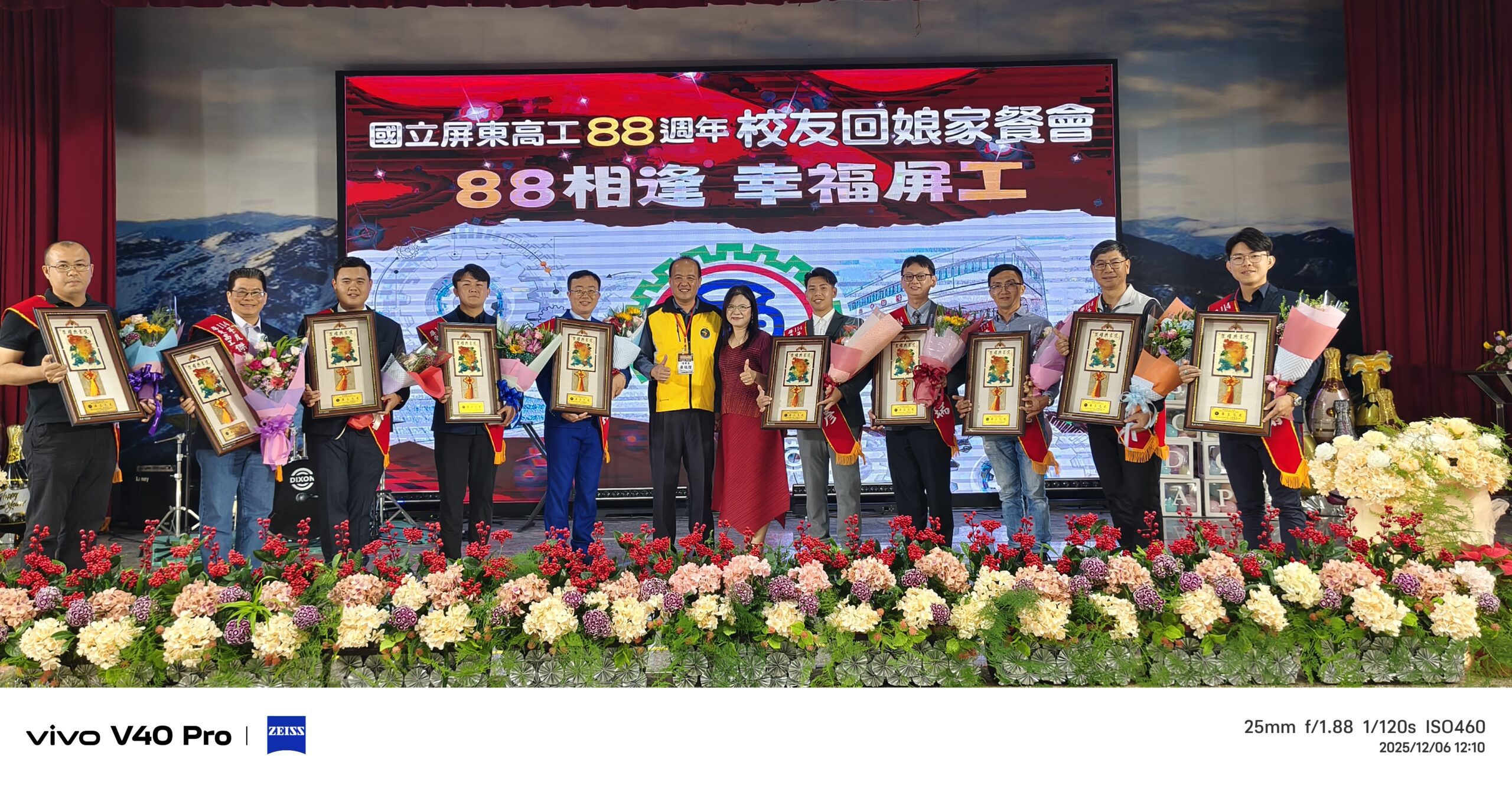 校友會理事長蕭瑞傑則感性分享,能擔任第10屆理事長深感榮幸,更難忘母校扎實的技職教育為他奠定職涯基礎。他說:「身為屏工人能回饋母校、投入教育,是我這輩子最大的福氣。」