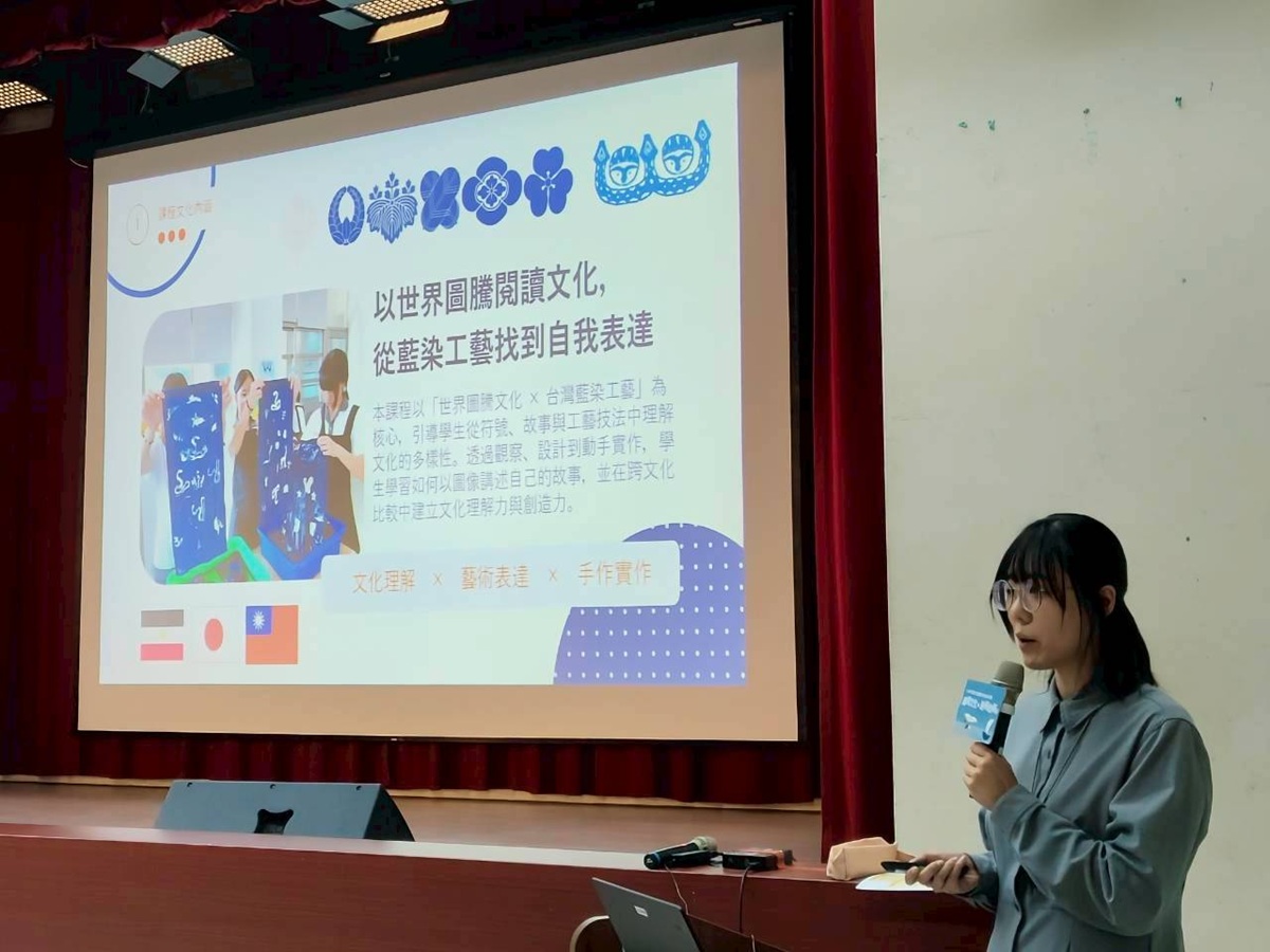 成果分享邀請三組團隊上臺分享本年度的成果,在工藝設計方面,財團法人水源地文教基金會以傳統藍染技法結合學生創意的圖騰設計,製作獨一無二的藍染故事旗;國聲廣播有限公司發揮其在文學閱讀與廣播錄製的專才,引導學生閱讀賴和<蛇先生>,透過聲音表演深入認識本土文本;將音樂和工藝跨域結合的彤漾藍工作室,收集在地不同年代的生活文化記憶後,運用科技輔助教導學生創作歌曲,並手作仿錄音帶型態的木盒,為過去的時代留下專屬記憶之聲。