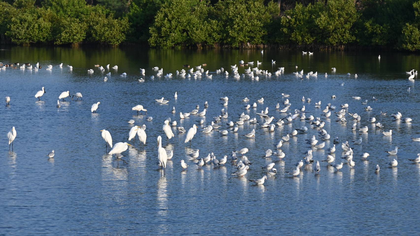 今日天氣晴朗,除了在布袋濕地生態園區能夠觀賞到眾多鷸鴴科鳥種及多元的生態外,在七股賞鳥亭、新岑公園、椬梧滯洪池等雲嘉南濱海景點皆有許多參賽選手穿戴著專業觀鳥設備專注賞鳥的畫面,展現出雲嘉南濱海地區自然生態的豐富性及鳥類資源的多樣性。