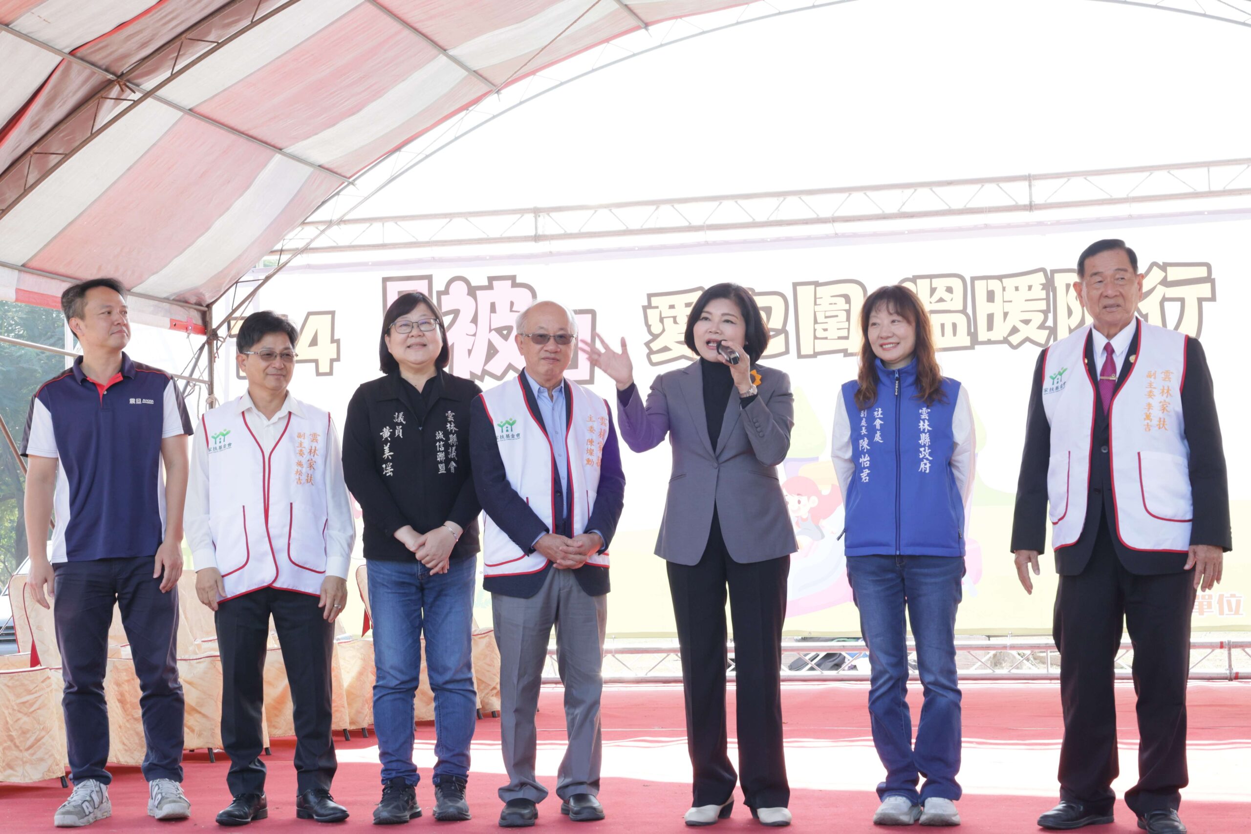 雲林家扶中心7日在虎尾農博園區舉辦歲末園遊會,邀請被扶助家庭「回娘家」。活動結合社會各界愛心,現場氣氛溫暖熱鬧;縣長張麗善除親自到場致意,更以實際行動捐款響應家扶服務,與雲林家扶主委陳燦勳及多家企業團體一同支持弱勢家庭。