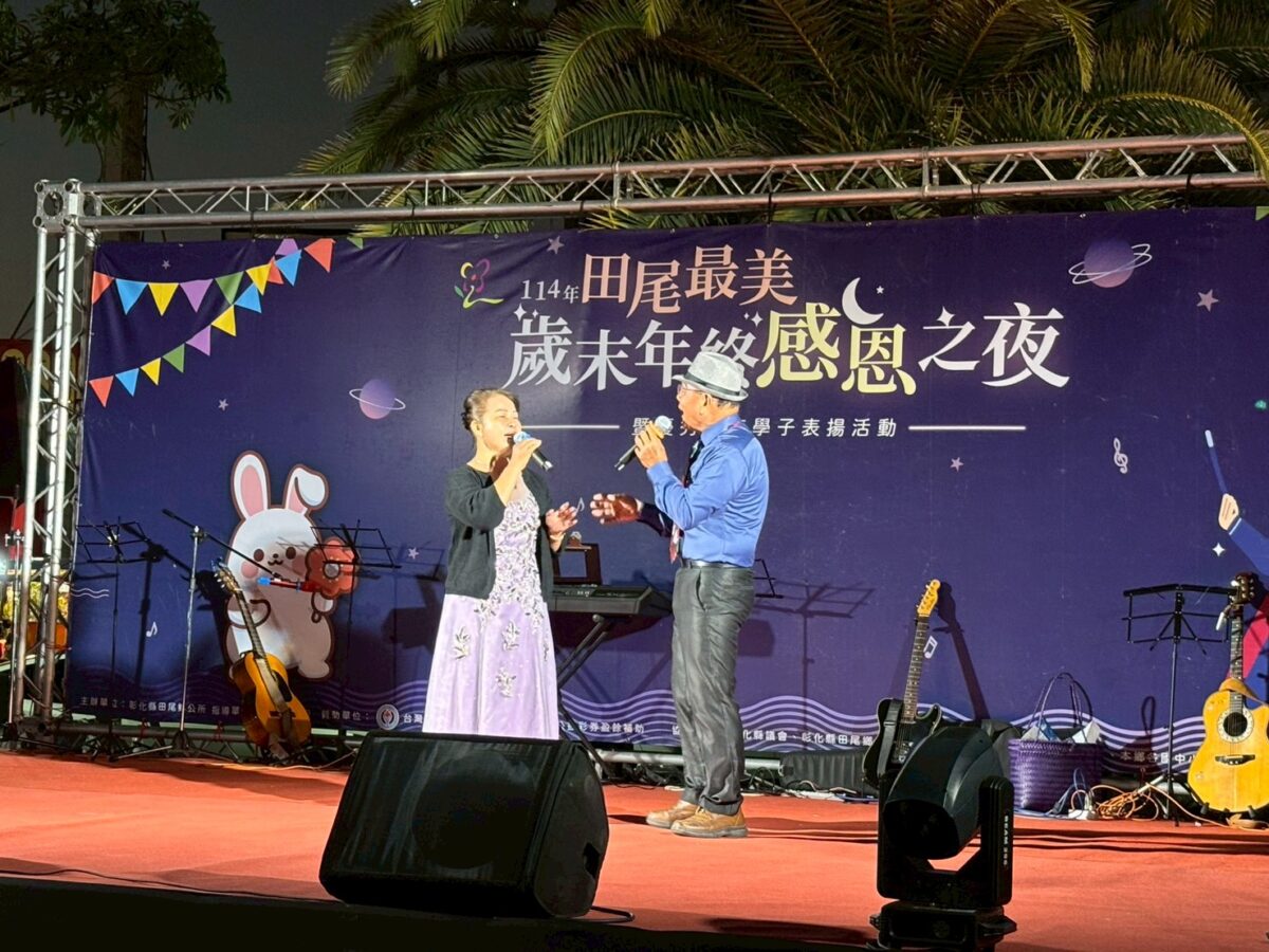 同時為了推廣閱讀風氣,6日也頒發「114年度花鄉享書香~競讀活動」得獎者30位,並藉由晚會活動,許淑美鄉長也對長期捐獻田尾急難救助金的謝會長、張團長及羅先生等人頒發感謝狀,以表達由衷感謝他們對社會送暖的義舉。活動場面活潑熱鬧、溫馨感人。