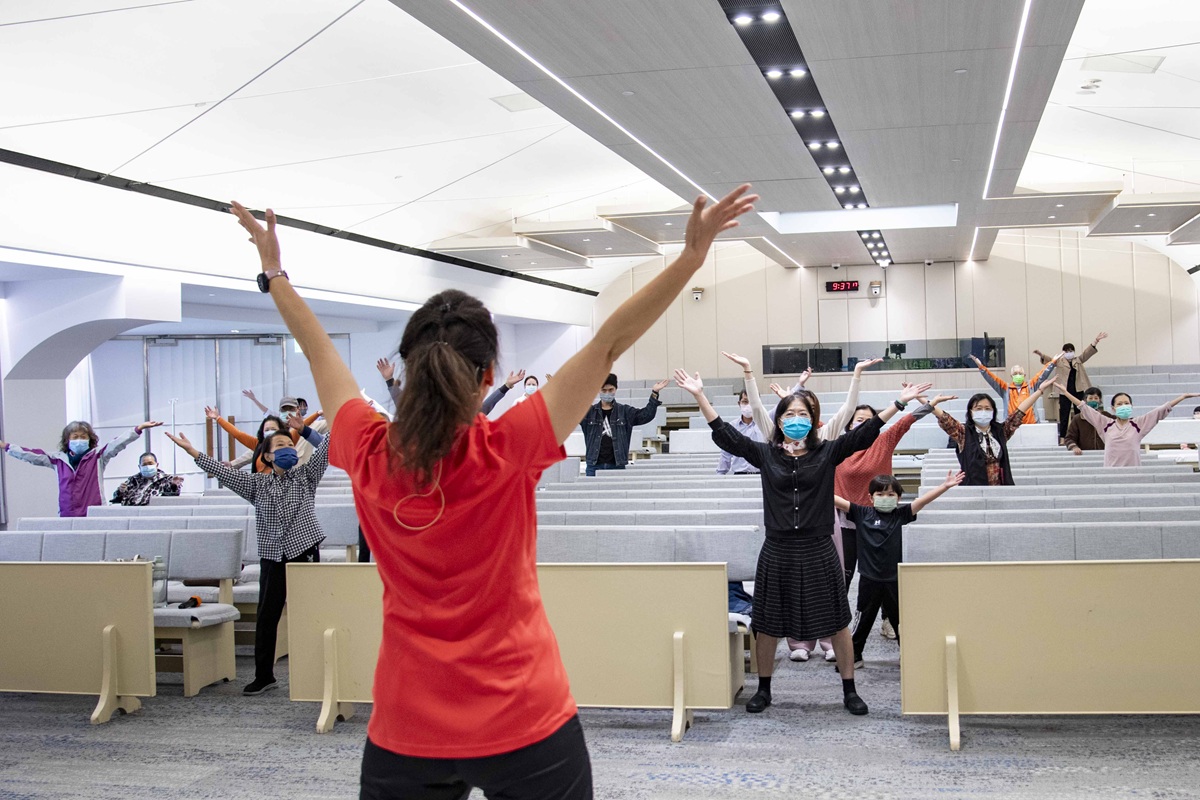 ▲韻律老師帶動病友及民眾齊跳樂齡伸展操活動筋骨。(圖/彰基提供)