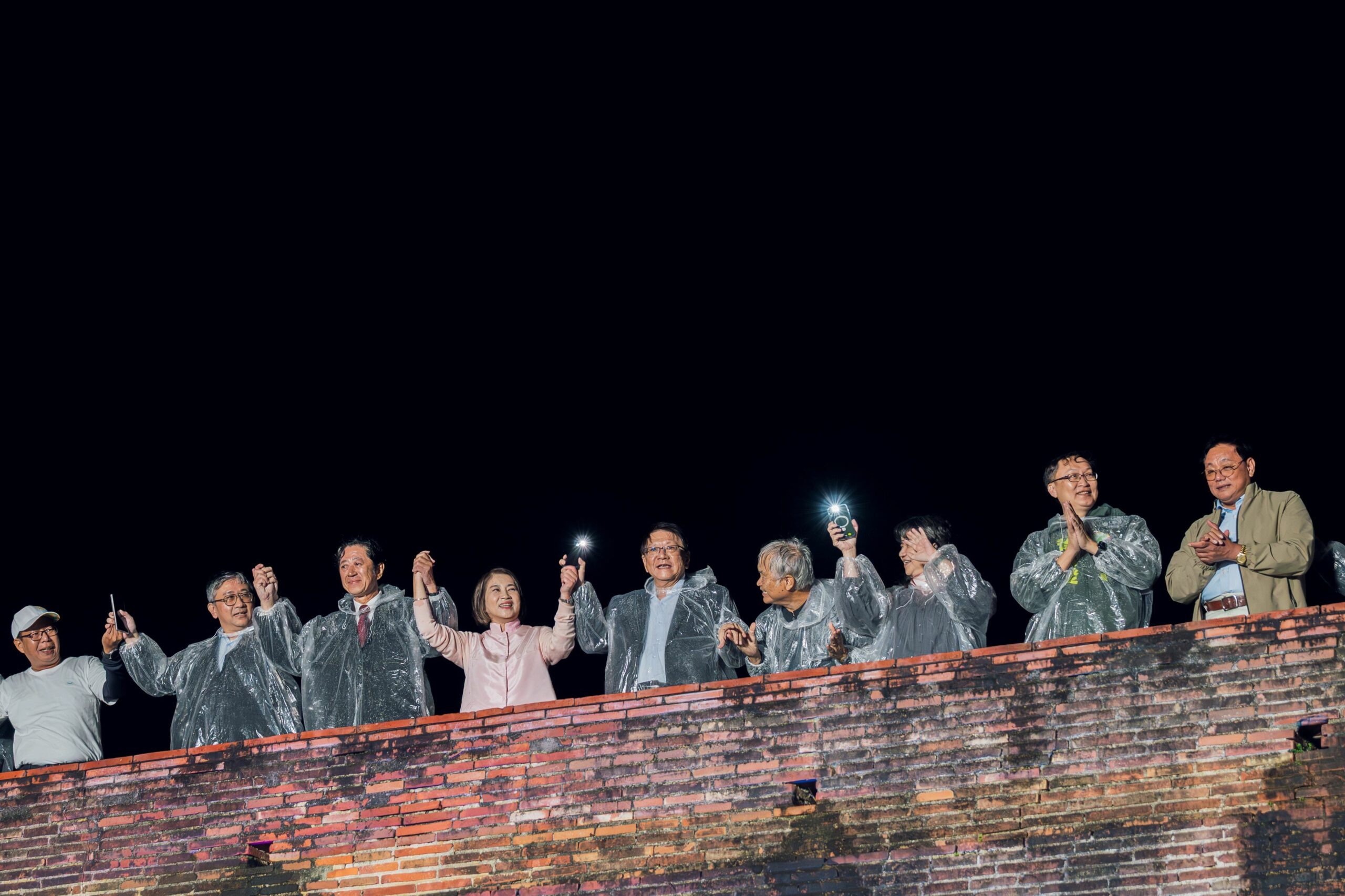 ▲總統府秘書長潘孟安、縣長周春米、文化部次長李靜慧、藝文界與地方人士牽手護城(圖/屏東縣政府)