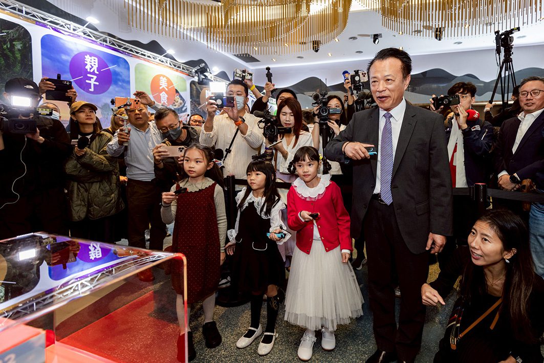 ▲縣長翁章梁與小朋友一起體驗互動遊戲。(圖/嘉義縣政府提供)