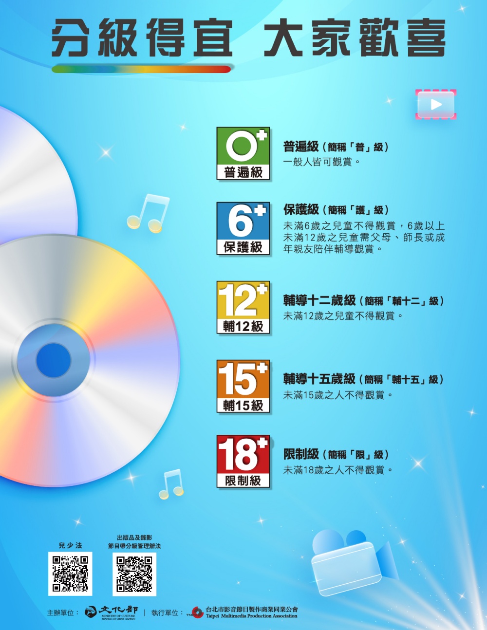 ▲「分級得宜。大家歡喜」節目分級觀念宣傳海報。(圖/台北影音公會提供)