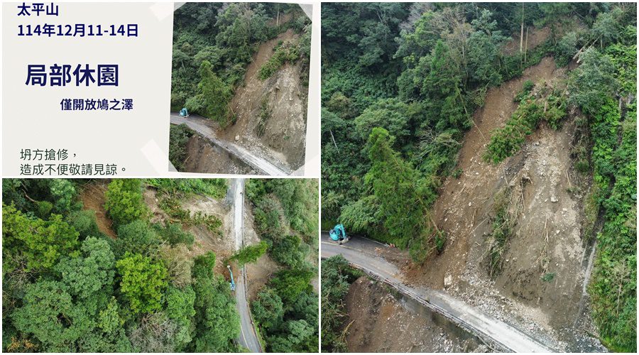 宜蘭分署說明,因施工期間打設鋼軌樁等作業時產生的振動,恐會增加邊坡不穩定的風險,為維護行車安全,該路段全面暫時封閉,太平山國家森林遊樂區休園4天,僅開放至鳩之澤溫泉區,12月10日至14日不提供住宿;入園門票及停車費以原收票價5折計收;國光客運暫時停駛;開園時間調整為上午8時。