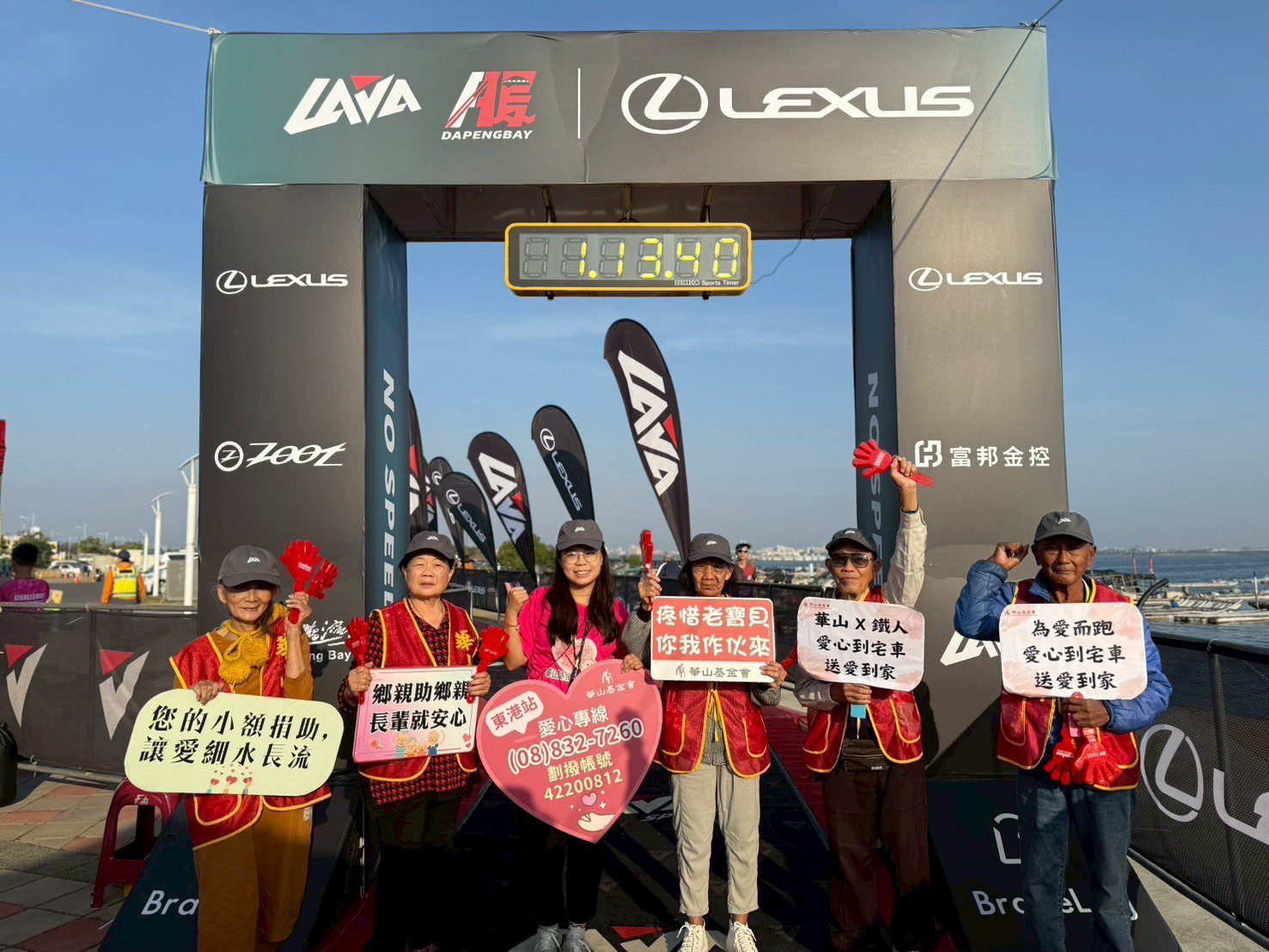 【記者蘇莉湘 / 屏東報導】 2025 LEXUS LAVA 大鵬灣鐵人賽於今日12月7日熱力登場!LAVA 鐵人三項自 2019 年起支持華山基金會東港站在地服務,今年再度響應公益,每一位選手於關門時間內完賽,主辦單位即捐出新台幣 50 元,完賽者越多,捐助越多,善款將幫助華山基金會東港愛心天使站「到宅服務車」汰舊換新。華山「百歲啦啦隊」爺爺奶奶活動一早將至鐵人賽的濱灣之心終點區,為選手們應援加油,感謝選手們在賽道上的「鐵人精神」,化為支持東港弱勢長者的力量。
