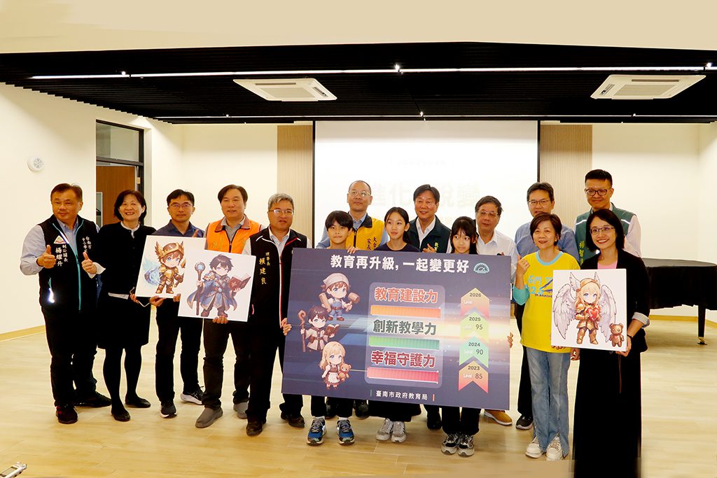 在教育建設力方面,新設校沙崙國際高中、蓮潭國中小國中部正式啟用;全面完成高國中小智慧型觸控大電視、水擦黑板及節能省電燈具,教學設備升級;打造友善通學環境,截至目前已投入超過13.2億經費完成102校通學環境,2025年另爭取14校獲補助2.7億經費。全面提升校舍安全,耐震補強改善371棟校舍、8.2億改善1,201間老舊廁所、丹娜絲災後投入2.45億修復受損校舍。