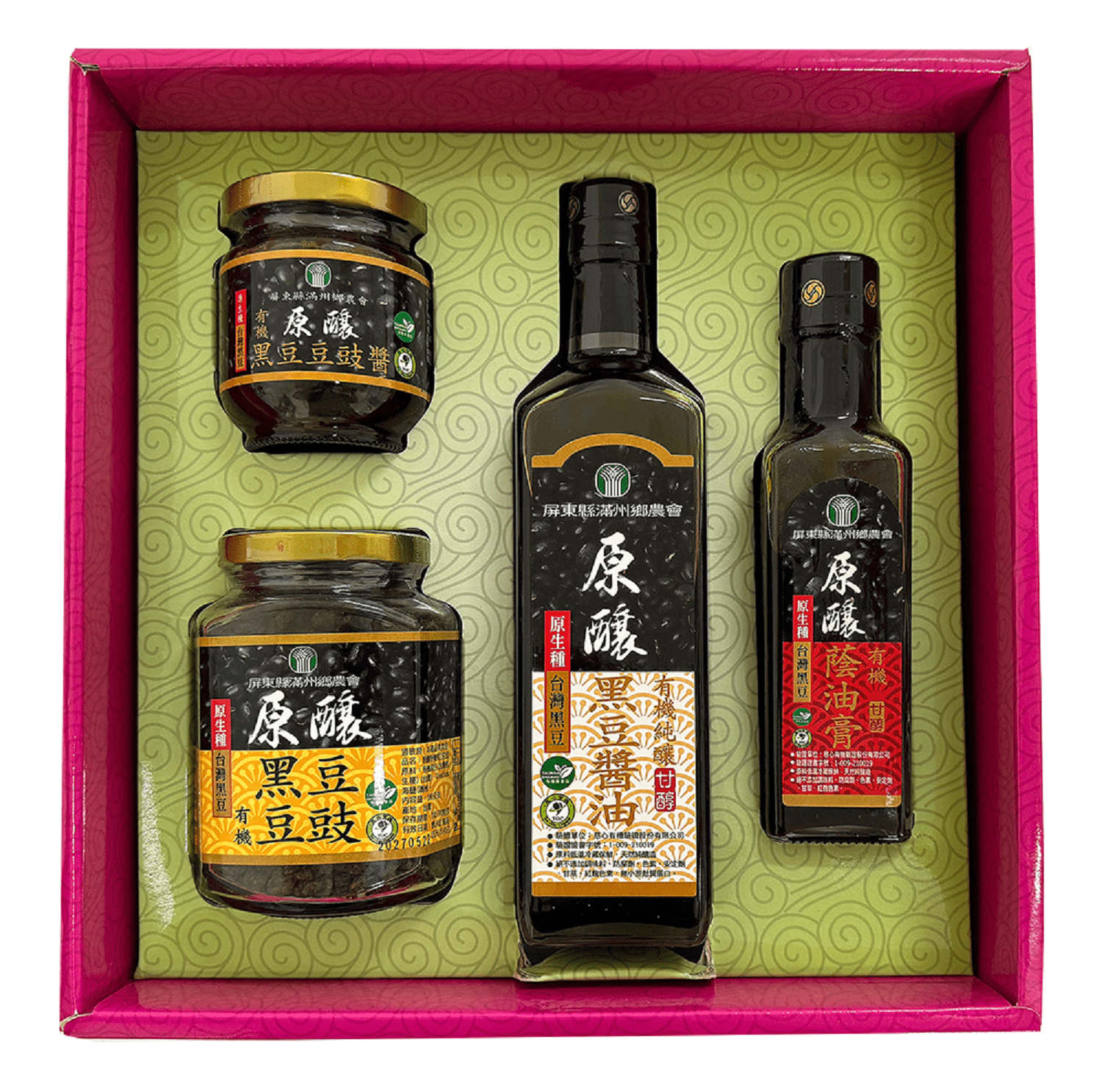 黑豆產品亦相當多元,從黑豆醬油、黑豆蔭油膏、有機黑豆豆豉醬、黑豆醋等呈現南國風情的調味料,到採用瑯嶠有機米酒、有機黑豆製作的黑豆酒,甚至跨界研發黑豆花青素面膜,從餐桌到保養品,象徵農業升級的無限可能。