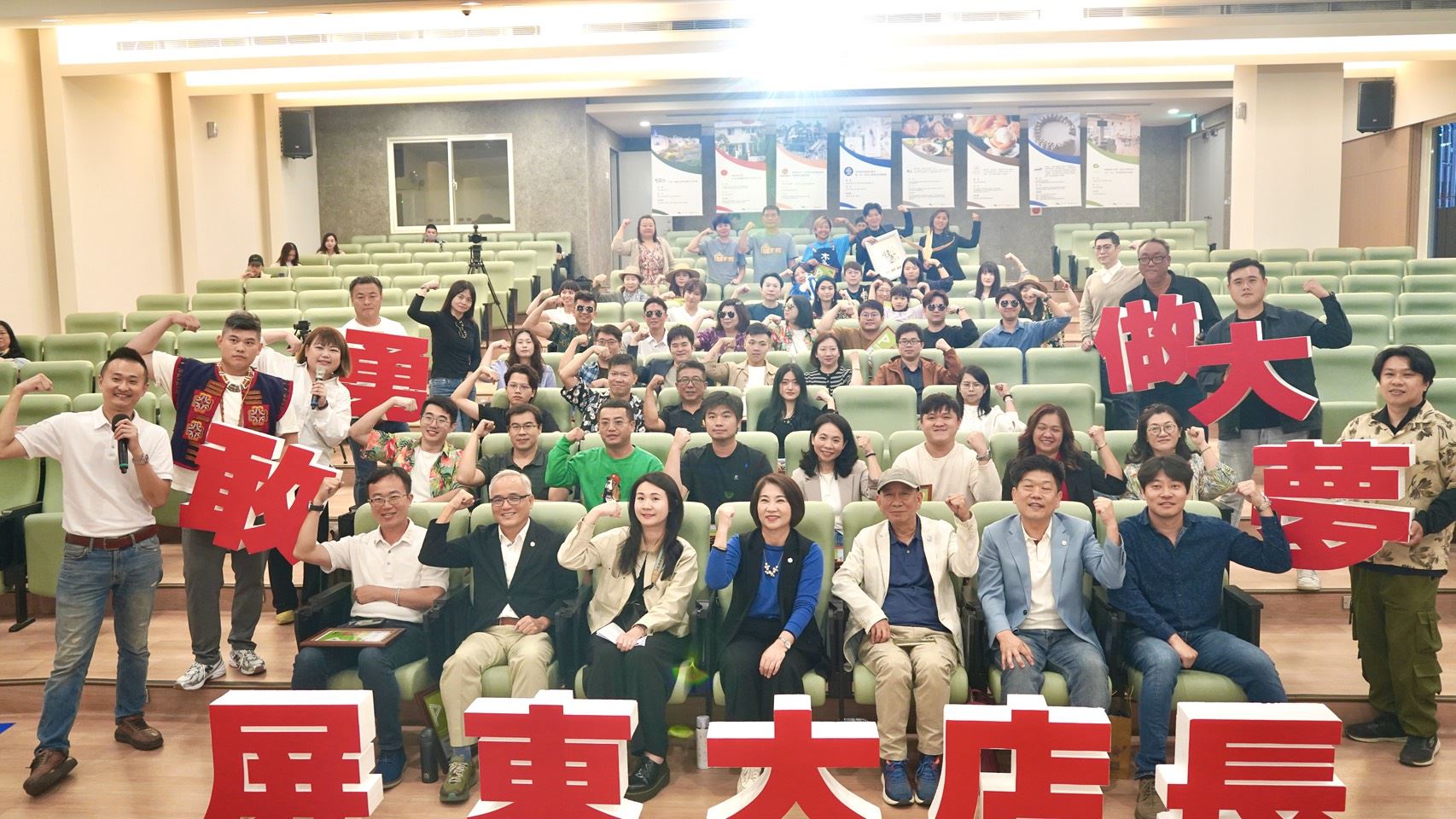 勞青處長李雨蓁補充,「第11期基礎營運班─屏南班」及「第3期高階策略班」兩班共計43位學員順利完成8週密集培訓,學員產業涵蓋工程、殯葬、養殖、旅宿、餐飲、五金機械等領域跨領域程度創新高,呈現屏東青年創業生態的高度多元與蓬勃生命力。本期學員跨領域程度創新高,透過彼此交流、彼此激盪,不僅強化經營策略,也深化團隊文化與品牌故事,展現「傳承、凝聚、挑戰」的大店長精神。