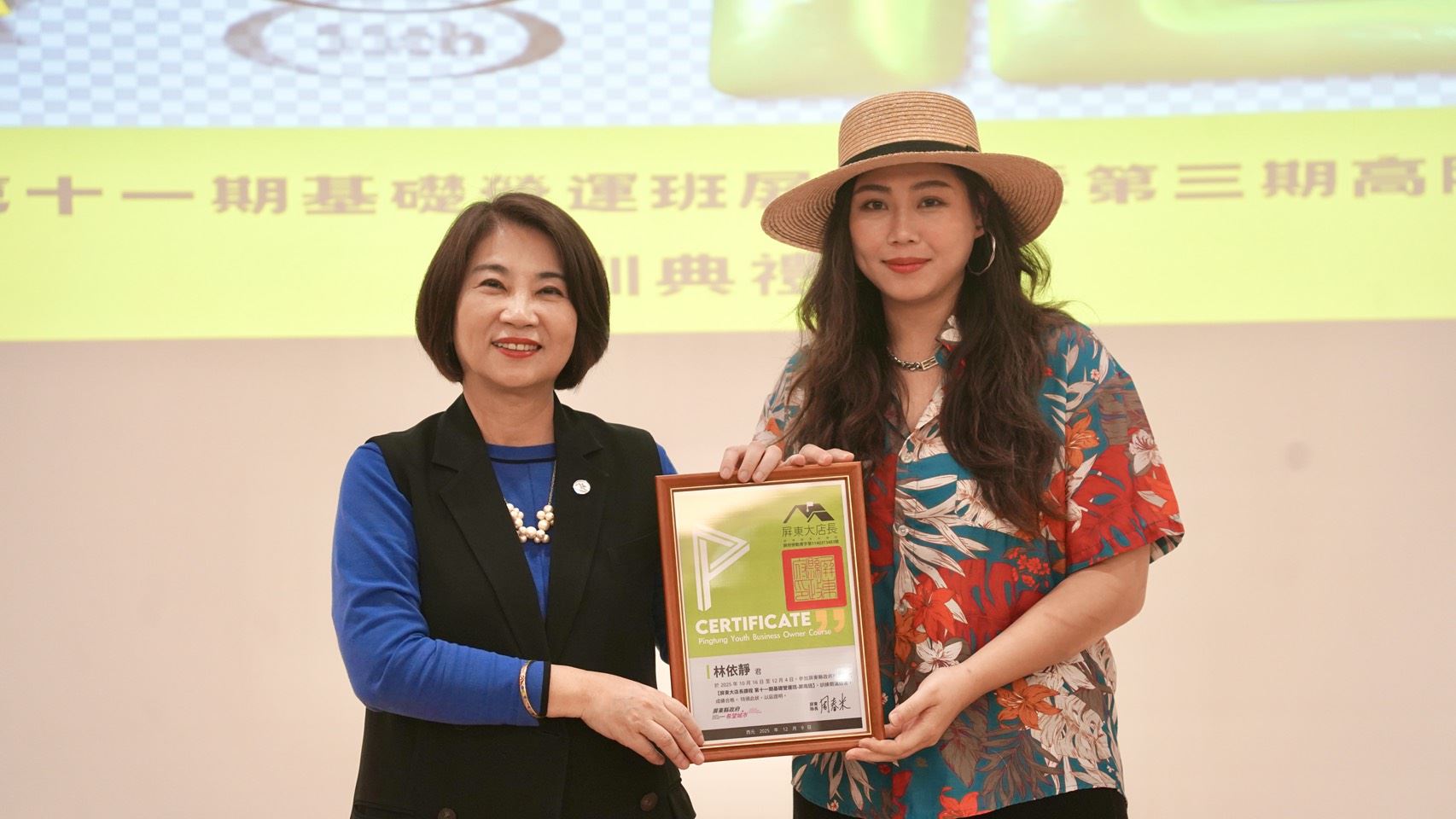 【記者范家豪/屏東報導】 屏東縣政府自2015年起開辦屏東大店長系列課程,累積迄今共培育出339位大店長,在王船文化館舉辦「第11期基礎營運班─屏南班」及「第3期高階策略班」結訓典禮,縣長周春米一一頒發43位學員結訓證書,並鼓勵學員們將課程所學實際運用至企業,帶領公司夥伴一同成長進步。