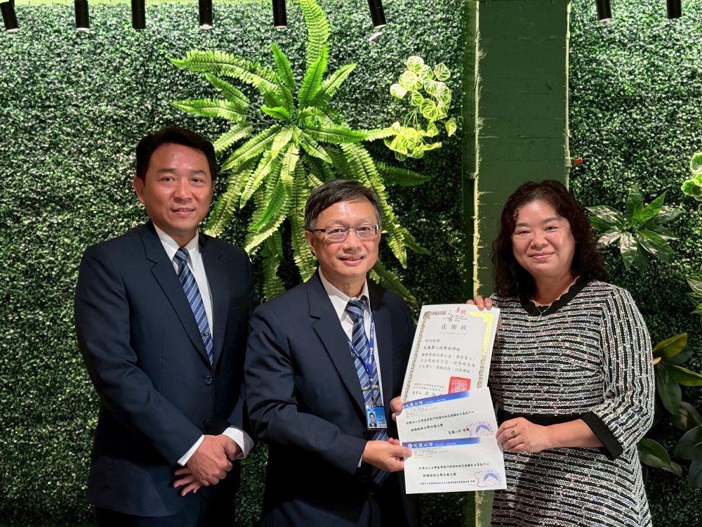 ▲花蓮二信總經理李郅明(中)由美崙分社經理蔡忠琪(左)陪同捐助善牧中心,由執行長朱玉貴(右)代為接受。(圖/花蓮善牧中心提供,下同)