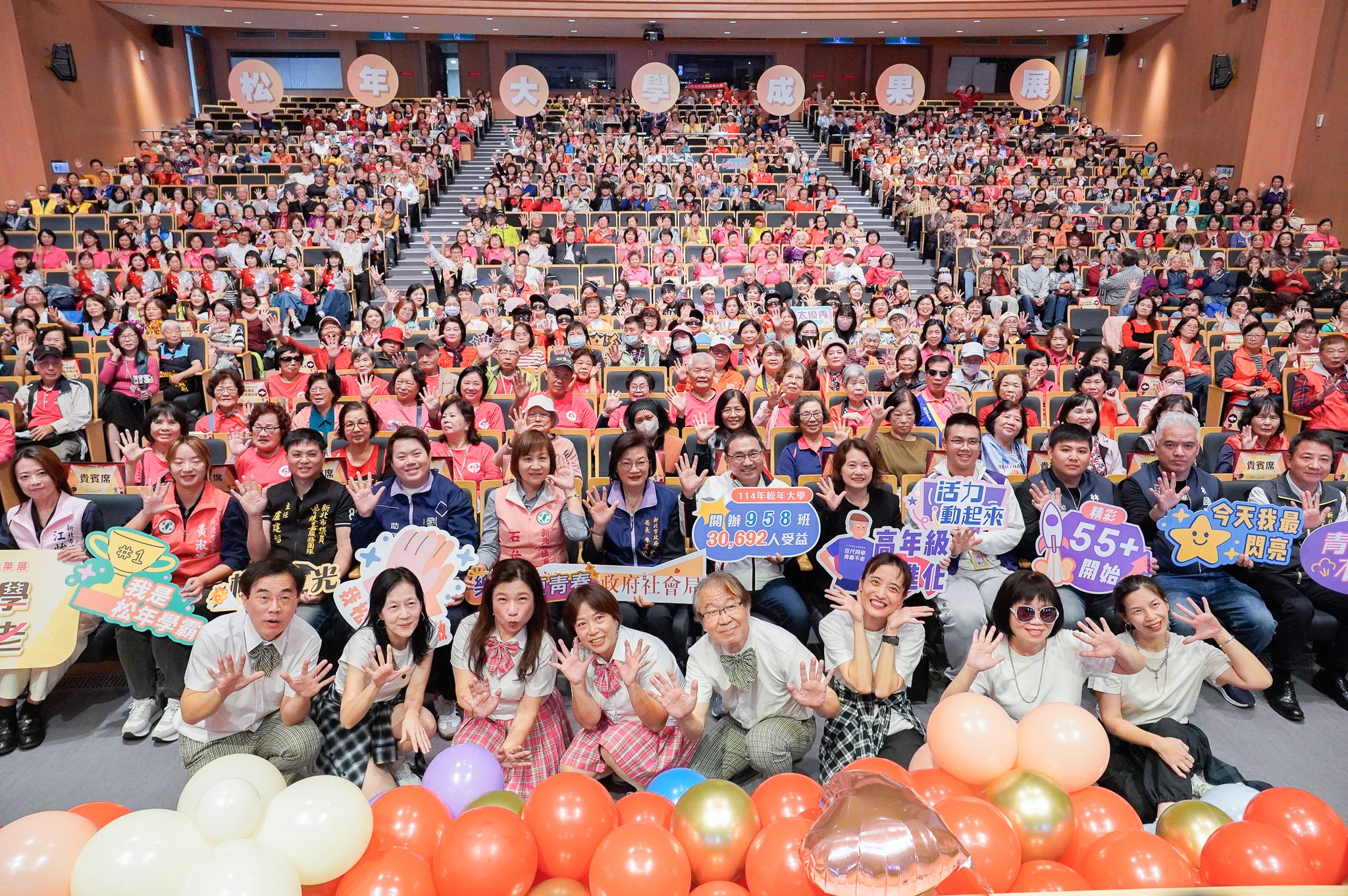 114年新北市松年大學動態成果展於10日在市府3樓多功能集會堂舉辦,本年度以「世代同學、青春不老」為主題,已於10月20日至24日在市府1樓大廳完成靜態成果展。市長侯友宜親臨現場鼓勵長者透過經歷學習提升自我價值感為自己創造晚美人生。動態成果展表演節目共有20個,內容豐富,包括國標舞、旗袍舞、雙人舞、異國風情舞蹈、手語表演、樂器合奏等,展現銀髮學習的成果與活力神,更讓舞台呈現多元文化性與國際感。