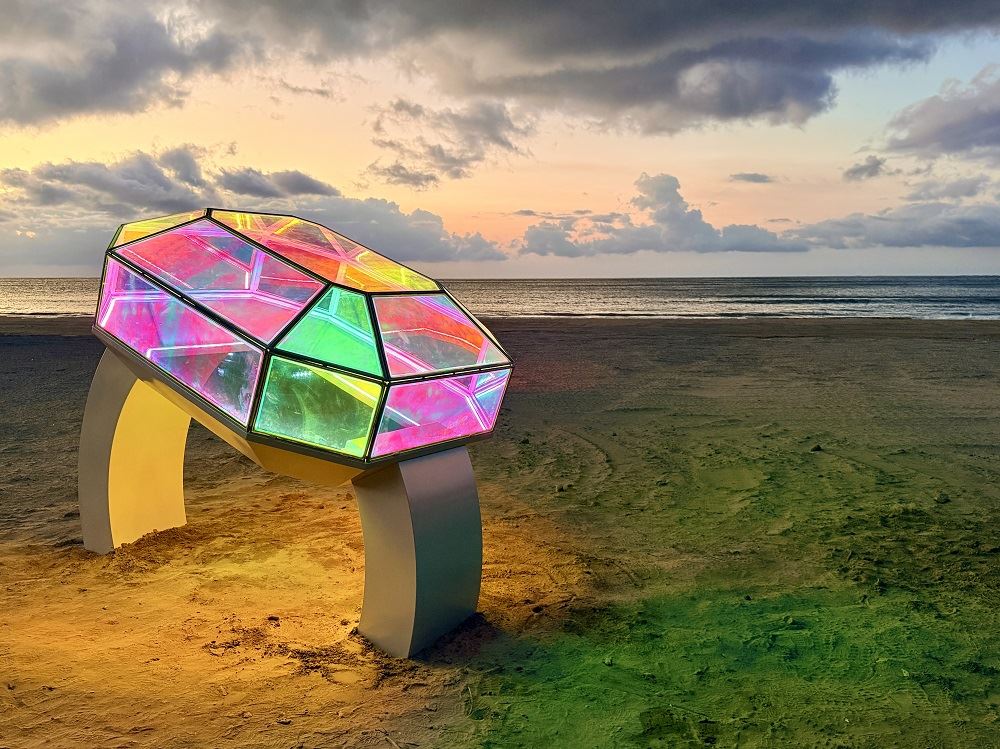 今年「看!海口Hey,Haikou!」邀請來自墨西哥ヽ美國、法國、日本、臺灣等16組藝術家,在沙灘、港灣、村落三大展區創作19件地景裝置及一檔看海美術館特展,其中,前衛纖維藝術家劉棟以數千片布料,透過層層堆疊,打造立體光影纖維藝術展,還有可愛擬人化犬、貓作品外,重頭大戲《海口狂想曲》,將於明年1月3日在海口沙灘盛大開演,期待透過多元創作與演出,打造跨文化、多層次的藝術饗宴。