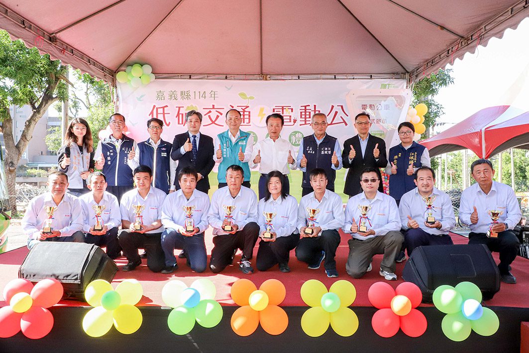 嘉義縣政府斥資1億1,321萬4,133元,採購10輛低碳電動大客車,並設置全新充電場站。11日在嘉義縣公車處正式亮相,嘉義縣長翁章梁、縣議員莊竣傑、華德動能科技股份有限公司總經理楊誌榮等人出席啟用典禮,並為10位優良駕駛員頒發獎座,感謝駕駛對嘉義縣公共運輸的貢獻。