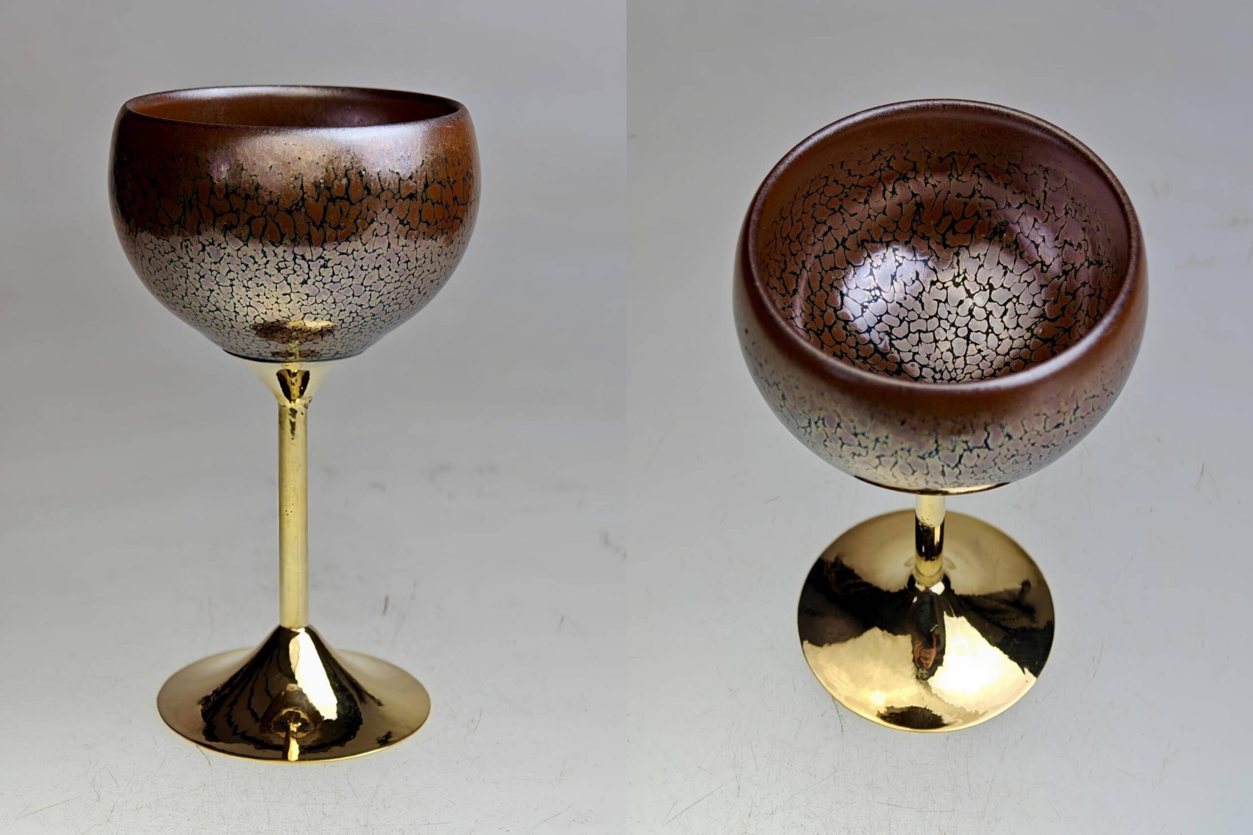 「聖杯」在基督教傳統是耶穌在最後晚餐使用過的杯子,用來盛裝葡萄酒,在基督徒心目中,聖杯象徵慈悲與關懷對生命的保護。10多年前張桂維閱讀聖經時,就在心中種下製作「聖杯」的種子。張桂維表示,這個陶燒製的高腳杯,結合宋代建盞工藝與現代技術,燒出具有金屬光澤的釉色。燒製過程非常困難,成功率約1%,每個杯子擁有獨一無二外觀,鐵在高溫控制得以轉化成一個磁場,讓水質由弱酸變化成弱鹼的特殊功效,並可使水分子變得更小更柔順。這種具有磁性的陶瓷杯能讓物質轉化的功效,如同聖杯中耶穌的血與葡萄酒轉化的概念契合。