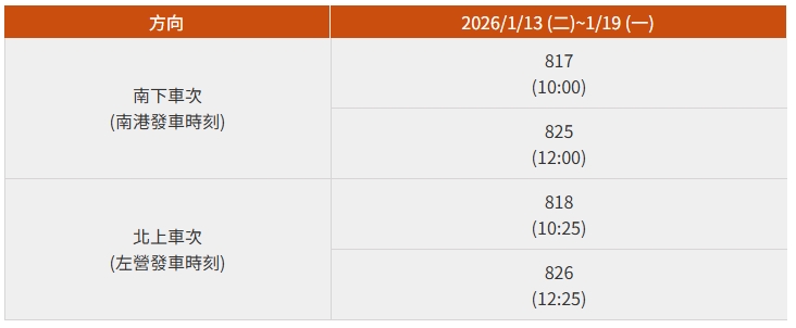 ▲「2026年大學生寒假返鄉5折優惠列車」時刻表」。圖/高鐵